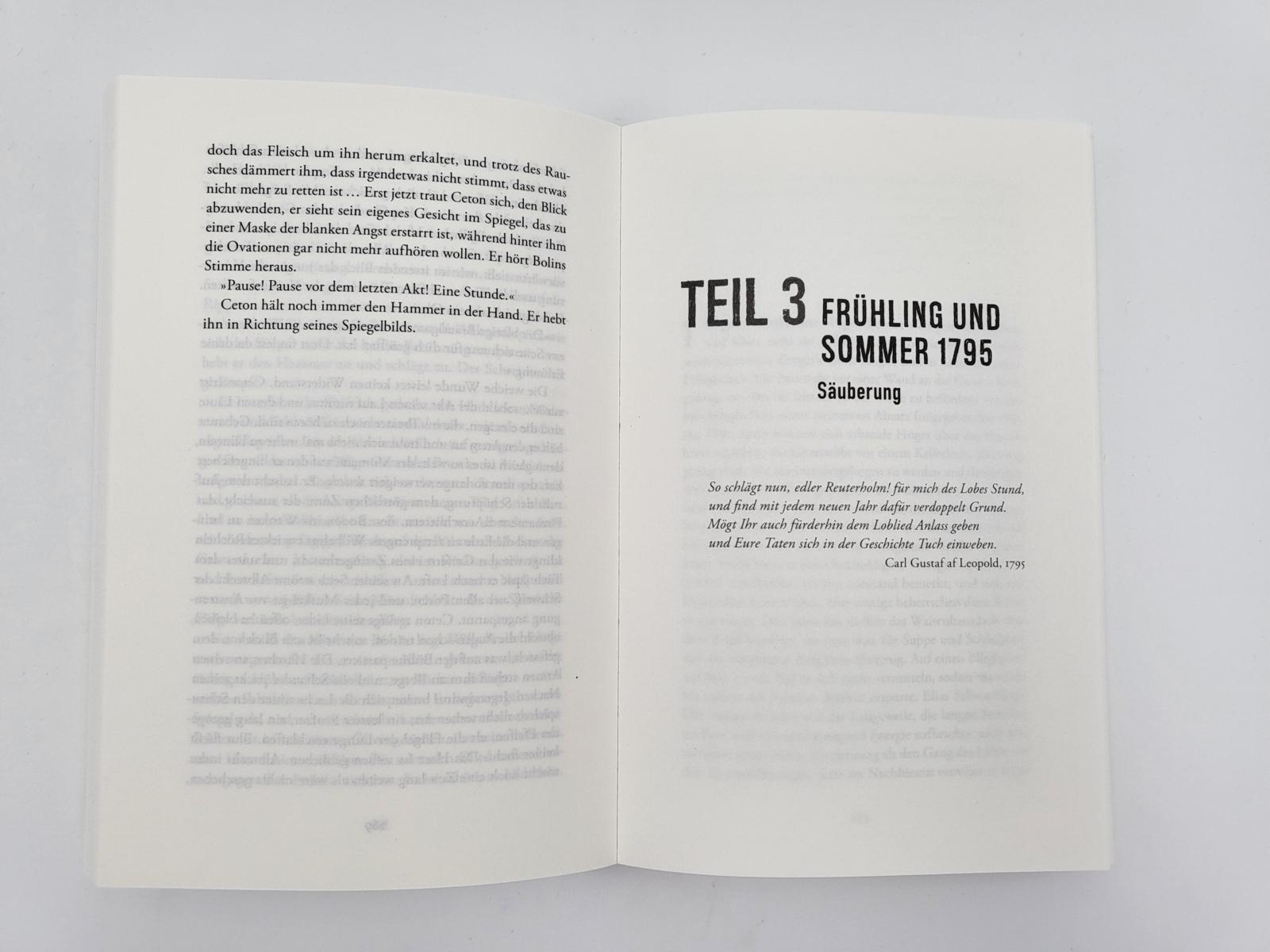 Zeitgleich beginnt das Königshaus eine unerbittliche Jagd auf alle Gegner der Regentschaft. Ein Brief mit den Namen der Verschwörer soll im Umlauf sein – und ausgerechnet die vermisste Anna Stina Knapp wurde damit gesehen. Zwei begnadete Ermittler stellen sich der Dunkelheit entgegen und wollen nicht nur Ceton fassen, sondern auch Anna Stina beschützen: Emil Winge und der einarmige Veteran Jean Michael Cardell. Doch während sie noch versuchen, für das Gute einzustehen, bahnt sich unaufhaltsam ein Inferno an …