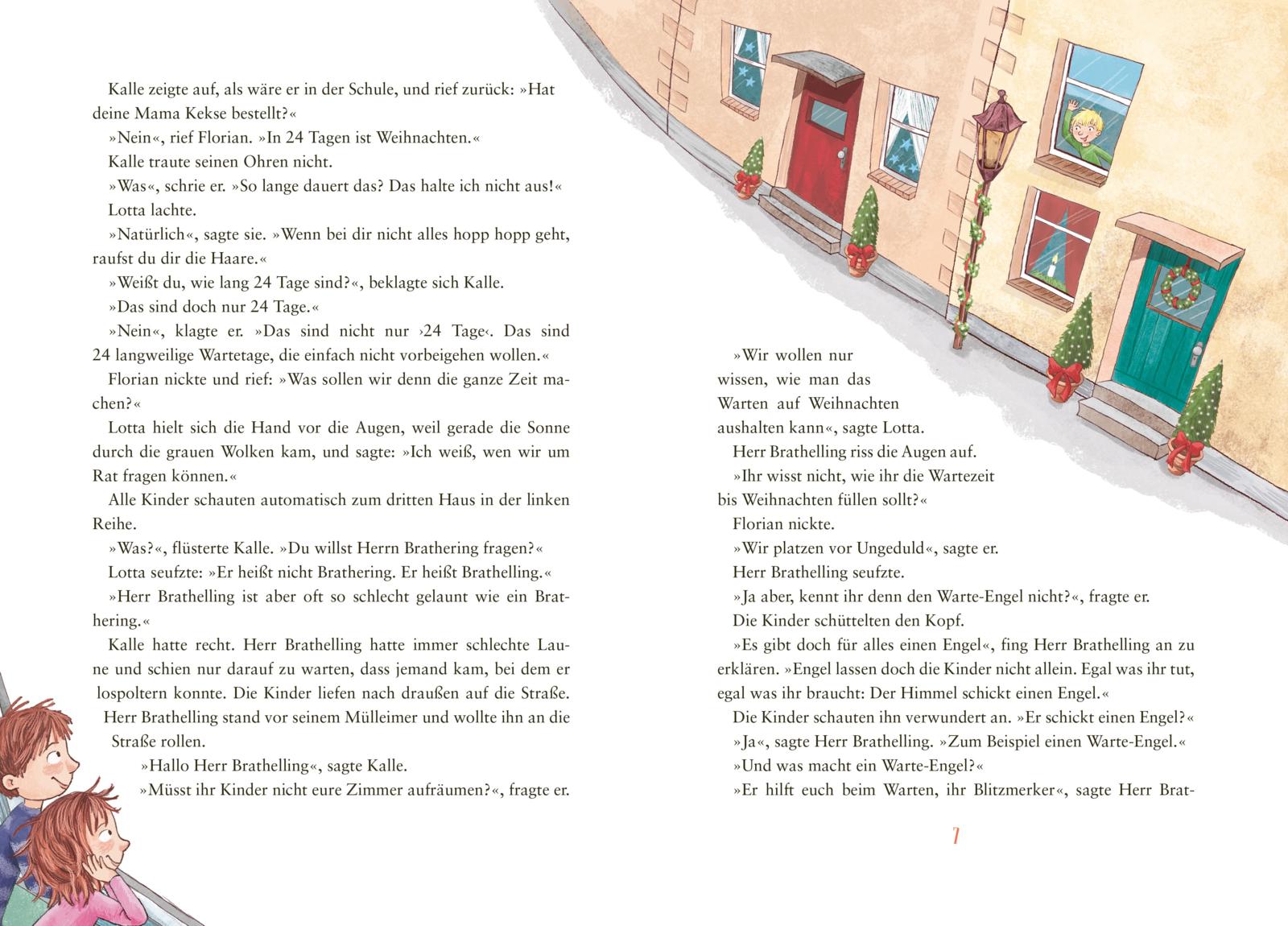 Noch 24 lange Tage Warten! Wie sollen sie das bloß aushalten, fragen sich Lotta, Uwe und Kalle. Zum Glück weiß Herr Brathelling aus dem Nachbarhaus Rat: Es gibt doch für alles einen passenden Engel. Einer, der beim Warten hilft, wäre tatsächlich toll, oder ein Bastel-Engel für den Christbaumschmuck oder einer beim Plätzchenbacken. Ob das wohl stimmt? Die Kinder jedenfalls sehen den verbleibenden 23 Tagen bis Weihnachten sehr gespannt entgegen.