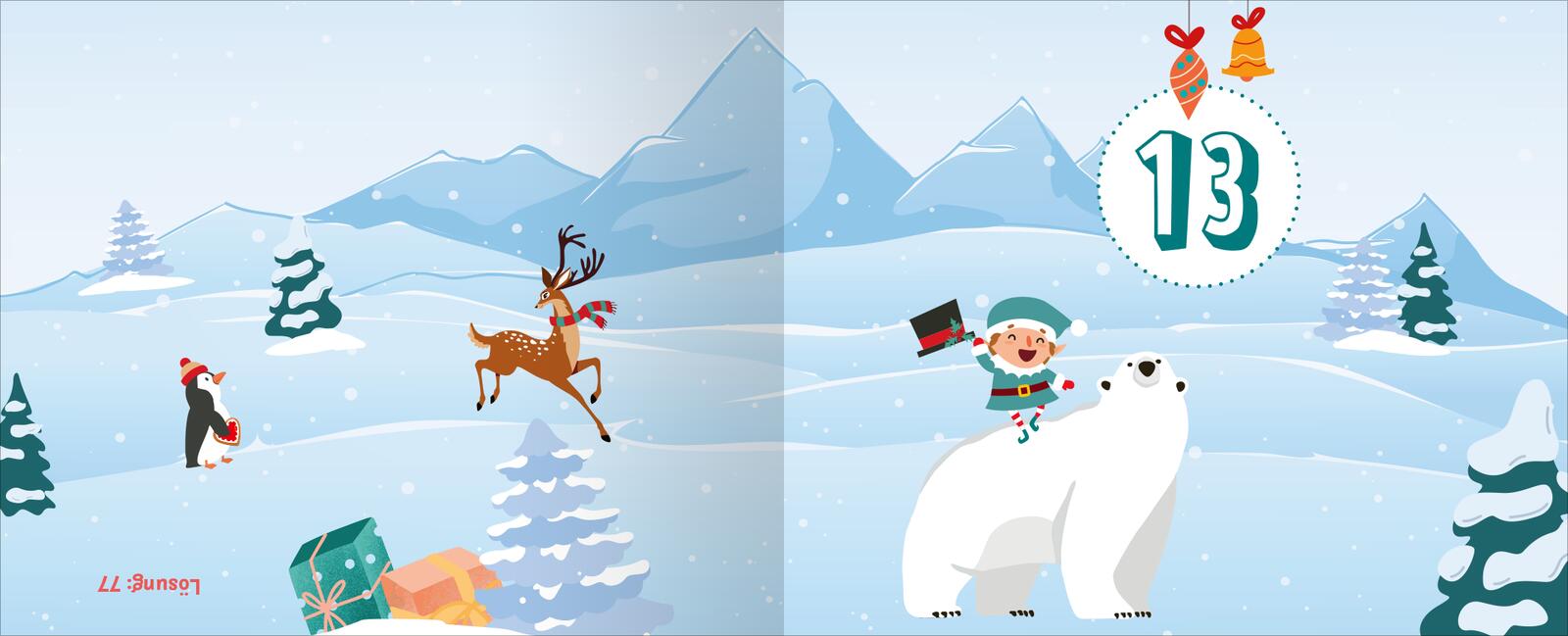 Jedes Jahr zum Weihnachtsfest wird für das beste Geschenk ein Preis ausgeschrieben. Auf dem Weg zum Nordpol erleidet ein junges Team Weihnachtshelfer in ihrem Heißluftballon wegen eines starken Schneesturms eine Bruchlandung. Der Weg zur Geschenkefabrik ist schwer und steinig – und ihre Geschenke sind auch überall verteilt! Werden sie es schaffen, noch rechtzeitig zum Weihnachtsessen einzutreffen? Und wieso scheint der Weg steiniger und steiler denn je zu sein? Löse 24 knifflige Weihnachtsrätsel mit den Weihnachtshelfern und hilf ihnen, ihr Geschenk dem Weihnachtsmann zu präsentieren. Und wer weiß, steckt vielleicht ein Saboteur hinter all den Hindernissen? Der Adventskalender ohne Schokolade, dafür mit 24 kniffligen Rätseln, die in einer aufregenden und humorvollen Geschichte miteinander verknüpft sind. Ein Spaß für die ganze Familie.