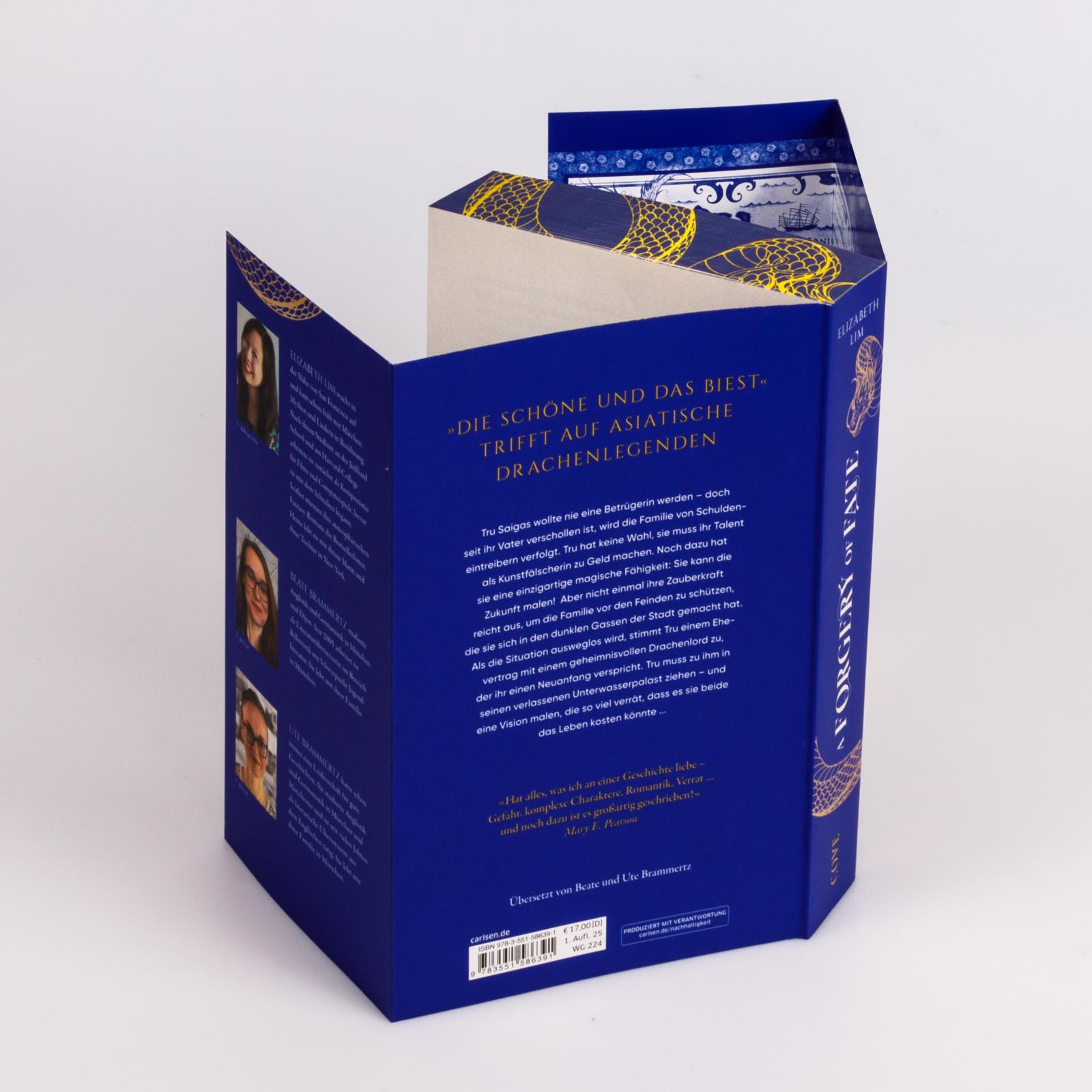 - Beschreibung Tru Saigas wollte nie eine Betrügerin werden – doch seit ihr Vater verschollen ist, wird die Familie von Schuldeneintreibern verfolgt. Tru hat keine Wahl, sie muss ihr Talent als Kunstfälscherin zu Geld machen. Noch dazu hat sie eine einzigartige magische Fähigkeit: Sie kann die Zukunft malen! Aber nicht einmal ihre Magie reicht aus, um die Familie zu schützen. Als die Situation ausweglos wird, stimmt Tru einem Ehevertrag mit einem geheimnisvollen Drachenlord zu, der ihr einen Neuanfang verspricht. Tru muss zu ihm in seinen verlassenen Unterwasserpalast ziehen – und eine Zukunft malen, die so viel verrät, dass es sie beide das Leben kosten könnte ... Hinweis: Farbschnitt nur in limitierter Auflage vorrätig. Sobald alle Exemplare mit Farbschnitt ausverkauft sind, liefern wir das Buch ohne Farbschnitt.