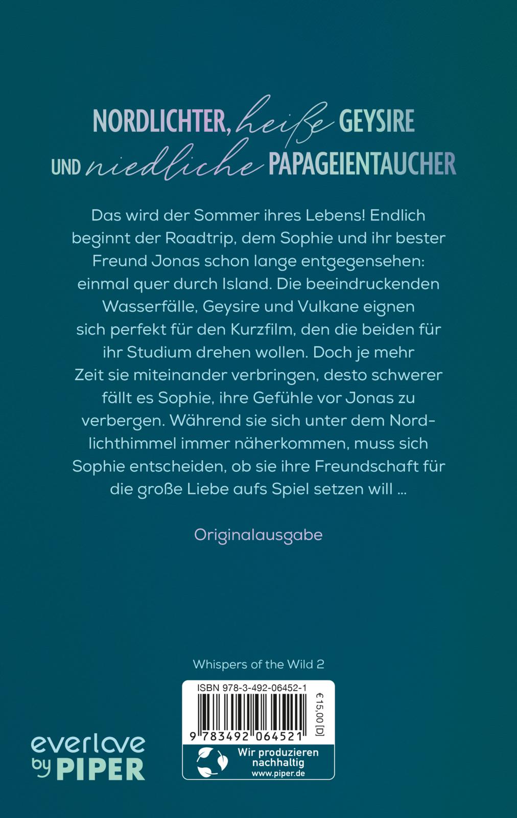- Beschreibung Das wird der Sommer ihres Lebens! Endlich beginnt der Roadtrip, dem Sophie und ihr bester Freund Jonas schon lange entgegensehnen: einmal quer durch Island. Die beeindruckenden Wasserfälle, Geysire und Vulkane eignen sich perfekt für den Kurzfilm, den Sophie und Jonas für ihr Studium drehen wollen. Doch je mehr Zeit die beiden miteinander verbringen, desto schwerer fällt es Sophie, ihre Gefühle für Jonas zu verbergen. Unter dem Nordlichthimmel kommen die beiden sich näher, und Sophie muss sich entscheiden, ob sie ihre Freundschaft für die große Liebe aufs Spiel setzen will …