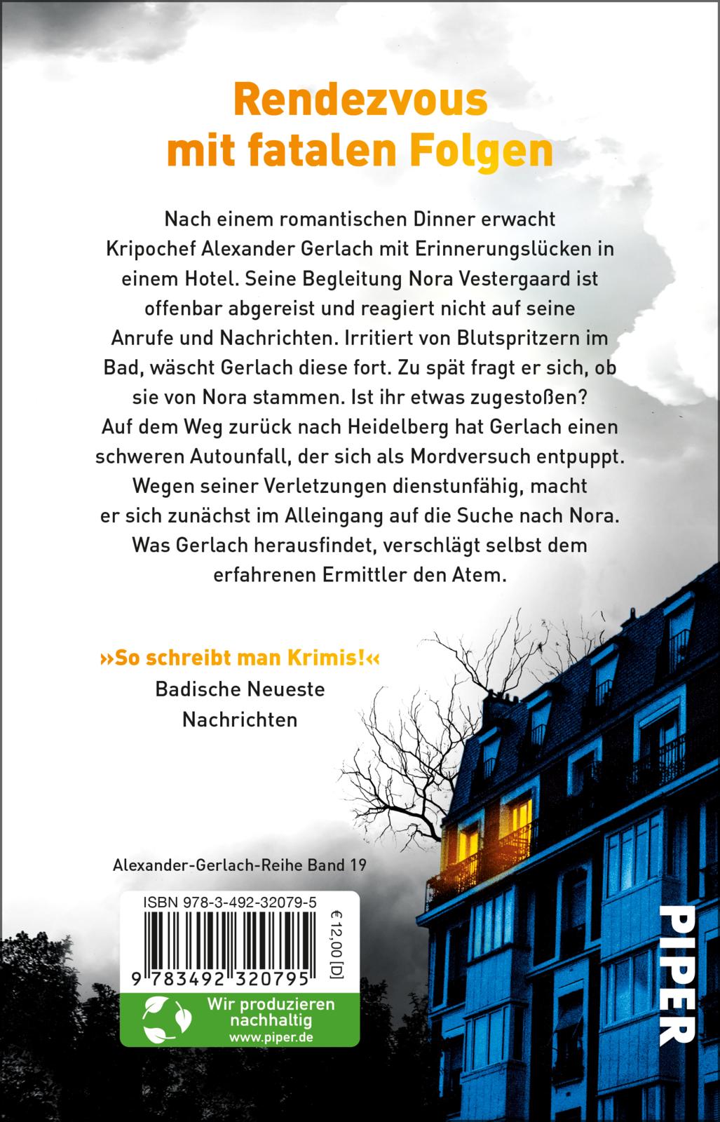 - Beschreibung Nach einem Date erwacht Kripochef Gerlach verwirrt und mit Erinnerungslücken im Hotel. Seine Begleitung Nora Vestergaard ist offenbar abgereist und reagiert nicht auf seine Anrufe. Irritiert von Blutspuren im Bad, wäscht Gerlach diese fort. Zu spät fragt er sich, ob sie von Nora stammten. Ist ihr etwas zugestoßen? Kurz darauf hat Gerlach einen schweren Autounfall, der sich schon bald als Mordversuch entpuppt. Wegen seiner Verletzungen dienstunfähig, macht er sich im Alleingang auf die Suche nach der verschwundenen Nora. Was er herausfindet, verschlägt selbst dem erfahrenen Ermittler den Atem.