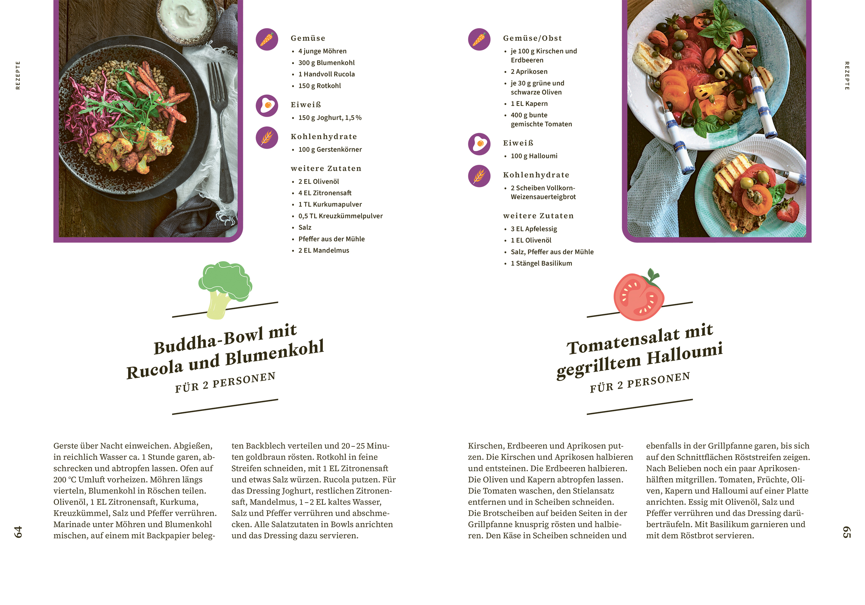 Hierzu gehören Hülsenfrüchte, Eier, Milchprodukte, Fleisch und Fisch. Auf diese Weise bekommt Ihr Körper alle wichtigen Vitamine und Nährstoffe sowie ausreichend Energie. Die Methode ist ernährungswissenschaftlich anerkannt. Sie werden merken, Heißhungerattacken wird es nicht mehr geben, Sie werden besser schlafen, können sich besser konzentrieren und Ihre gute Laune wird ansteckend wirken. In diesem Ratgeber lernen Sie Schritt für Schritt das Tellerprinzip kennen. Sie erfahren, wie Sie Mengen richtig einschätzen ohne ständig alles abzuwiegen. 70 einfache wie raffinierte Rezepte erleichtern Ihnen den Alltag. Probieren Sie es aus.