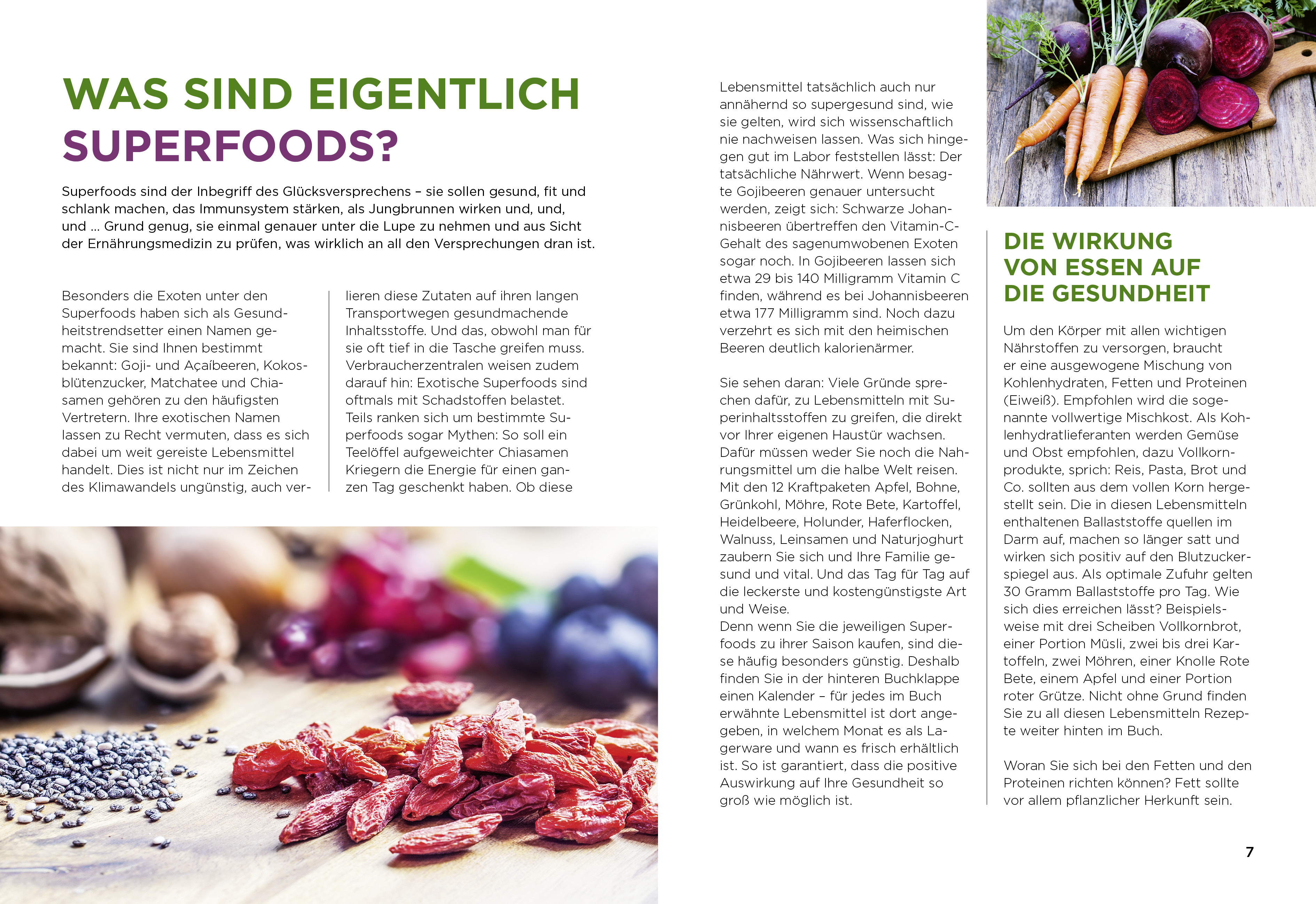 Superfoods sind Lebensmittel, die durch ihre natürlichen Eigenschaften einen positiven Einfluss auf unsere Gesundheit haben. Dabei müssen sie nicht aus exotischen Ländern importiert werden. Unsere Heimat bietet uns viele gesunde Lebensmittel – vom Apfel über die Möhre bis hin zur Kartoffel. Der große Vorteil: Wir können dieses Obst und Gemüse saisonal und damit nachhaltig einkaufen. Das neue Buch der Apotheken Umschau zum Thema „Superfoods" bietet zahlreiche Informationen rund um die heimischen Lebensmittel und zeigt in über 50 Rezepten, wie lecker und abwechslungsreich wir mit diesen Zutaten kochen können.