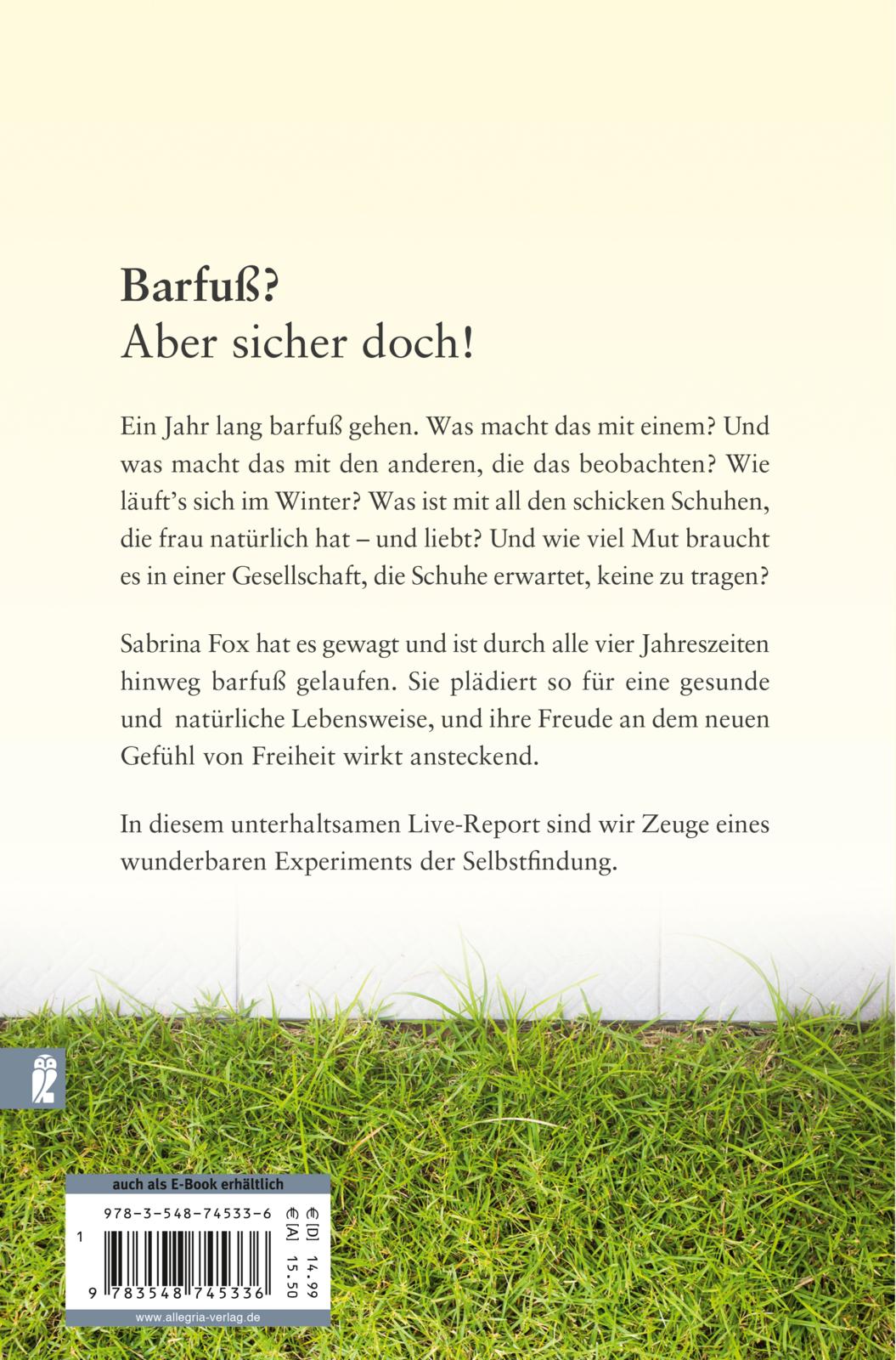 Worum geht es? Ein Jahr lang barfuß gehen. Was macht das mit einem? Und was macht das mit den anderen, die das beobachten? Wie läuft’s sich im Winter? Was ist mit all den schicken Schuhen, die frau natürlich hat – und liebt? Wie viel Mut braucht es in einer Gesellschaft, die Schuhe erwartet, keine zu tragen? Mit diesem Buch plädiert die Autorin für eine gesunde und natürliche Lebensweise. Konsequentes Barfußlaufen stellt unsere Lebensgewohnheiten in Frage und ermöglicht ein ganz neues Gefühl von Freiheit. Was ist besonders? Dieses Buch ist ein Live-Report über ein wunderbares Experiment der Selbstfindung.