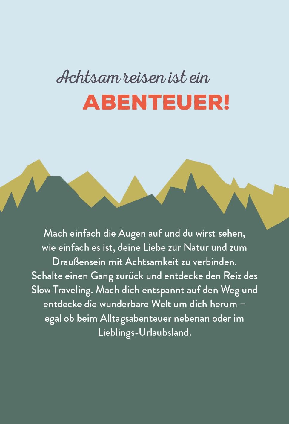 Du bist gerne auf Reisen oder liebst kleine Alltagsabenteuer? Oder du kennst jemanden, der genauso tickt? Wenn du deine Liebe zur Natur und zum Draußensein mit Achtsamkeit der Umwelt und dir selbst gegenüber verbinden willst, wirst du dieses Buch lieben. Es öffnet dir die Augen für die kleinen Wunder des Alltags und führt dich auf einem achtsamen Weg durch deine Outdoor-Abenteuer.