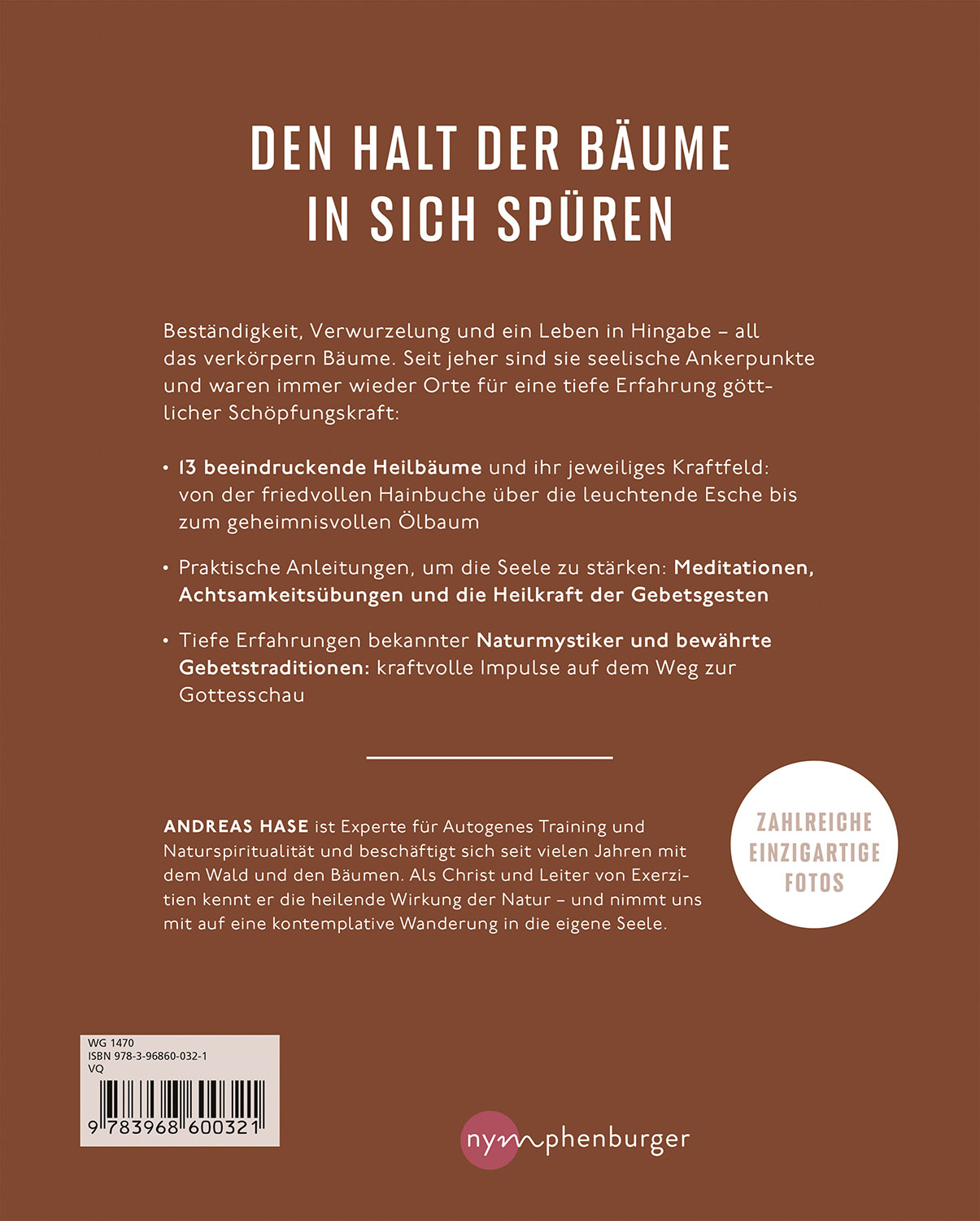- Beschreibung Bäume gelten seit jeher als seelische Haltepunkte, denn sie stehen für Beständigkeit, Verwurzelung und vitales Leben. Andreas Hase nimmt seine Leser mit auf eine kontemplative Wanderung zu 13 Heilbäumen und zeigt, wie wir uns die konzentrierten Naturkräfte der Bäume zugänglich machen können. Seine praktischen Anleitungen veranschaulichen, wie Meditationen, Achtsamkeitsübungen und (Leib-)Gebete in der modernen Naturspiritualität ihre größte Wirkung entfalten – zur Stärkung der Seele und für eine tiefe Gotteserfahrung. Unterlegt mit vielen wunderbaren Naturfotos nimmt er dabei die eindrücklichsten Merkmale der vorgestellten Bäume in den Blick und bringt sie in Zusammenhang mit vielen Gebetstraditionen und den bewegendsten Naturmystikern der Geschichte.