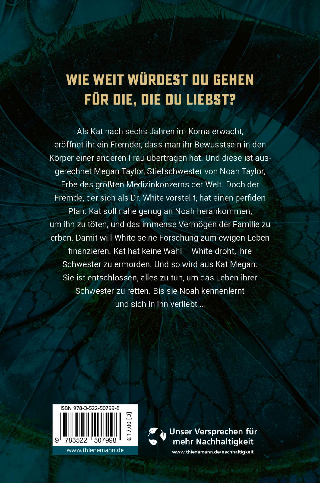- Beschreibung Wie weit würdest du gehen für die, die du liebst? Du bist tot. Eigentlich. Aber es gibt eine letzte Chance. Als Kat nach sechs Jahren im Koma die Augen aufschlägt, eröffnet ihr ein fremder Mann, der sich als Dr White vorstellt, dass man ihr Bewusstsein in den Körper einer anderen Frau transferiert hat. Und diese ist ausgerechnet Megan Taylor, Stiefschwester von Noah Taylor, einem der reichsten Männer der Welt. Für seinen Dienst erwartet Dr White allerdings eine Gegenleistung: Kat soll nahe genug an Noah herankommen, um ihn zu töten. Scheitert sie, ist das Leben ihrer Schwester verwirkt. Und so wird aus Kat Megan. Sie ist entschlossen, alles zu tun, um ihre Schwester zu retten. Bis sie Noah kennenlernt und sich in ihn verliebt … Altersempfehlung: ab 13 Jahre