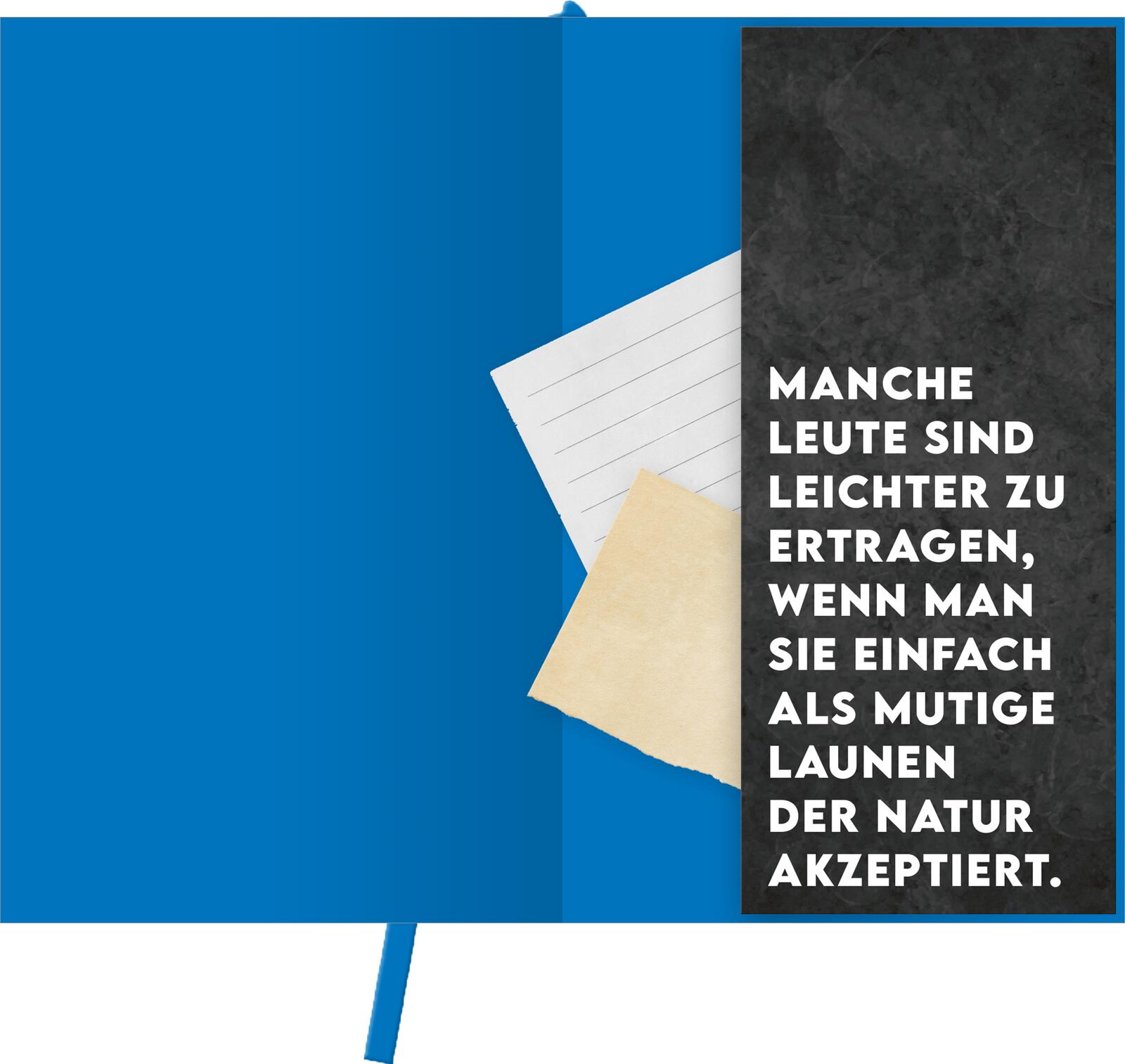 Du suchst ein handliches Notizbuch, liebst hochwertige Papeterie und bist Fan von Ironie und Sarkasmus? Dann ist das Mini-Blankbook in DIN A6 unserer Papeterie-Linie „Böse Sprüche“ genau richtig für dich. Es ist nicht nur praktisch und kompakt, sondern trifft auch noch genau deinen Humor! Die Einstecktasche bewahrt alles Wichtige für dich auf. Und das Gummiband sorgt dafür, dass nichts hinausfällt. Die gepunkteten Seiten erleichtern dir das Eintragen, auch unterwegs. Dein myNOTES hält alles fest, was du dir vorstellen kannst. Denn wir finden: Gute Gedanken und geniale Ideen musst du aufschreiben, damit sie nicht verloren gehen.
