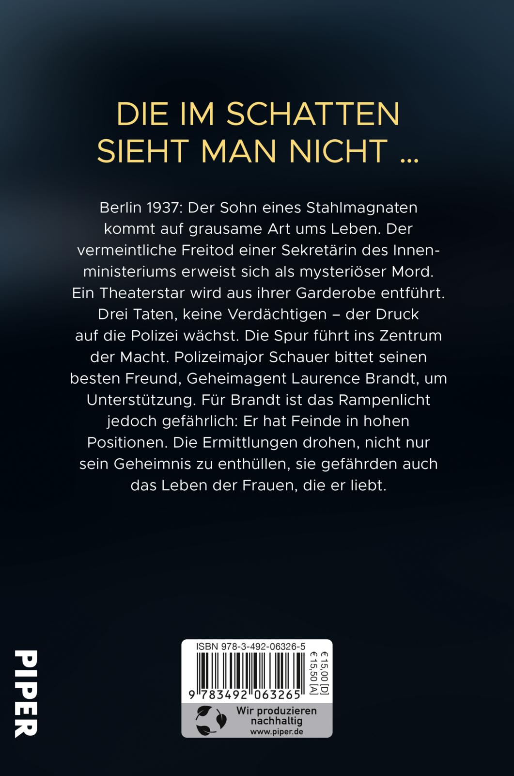 - Beschreibung Berlin 1937: Nahe einer Siedlung, die man Drachenloch nennt, wird ein Industriellensohn vor einen Zug geworfen. Im Hals einer toten Sekretärin findet sich eine Jadefigur in Gestalt eines Drachen. Im Pergamonmuseum wird ein Theaterstar mit einem Drachendolch getötet. Polizeimajor Schauer bittet den Geheimagenten Laurence Brandt um Hilfe – denn diese Morde haben eine politische Dimension. Für Brandt ist das Rampenlicht allerdings gefährlich: Er hat Feinde in hohen Positionen. Die Ermittlungen drohen nicht nur sein Geheimnis zu enthüllen, sie gefährden auch das Leben jener, die er liebt.