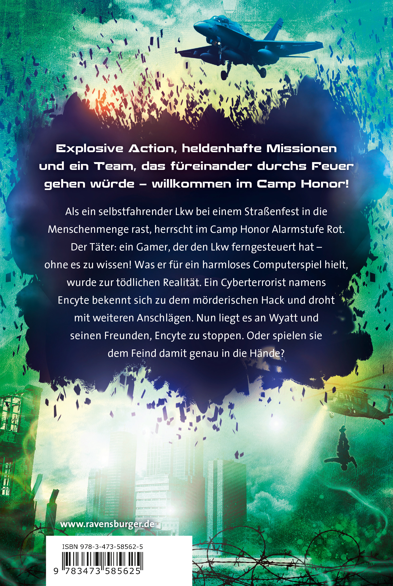Als ein selbstfahrender Lkw bei einem Straßenfest in die Menschenmenge rast, herrscht im Camp Honor Alarmstufe Rot. Der Täter: ein Gamer, der den Lkw ferngesteuert hat – ohne es zu wissen! Was er für ein harmloses Computerspiel hielt, wurde zur tödlichen Realität. Ein Cyberterrorist namens Encyte bekennt sich zu dem mörderischen Hack und droht mit weiteren Anschlägen. Nun liegt es an Wyatt und seinen Freunden, Encyte zu stoppen. Oder spielen sie dem Feind damit genau in die Hände?