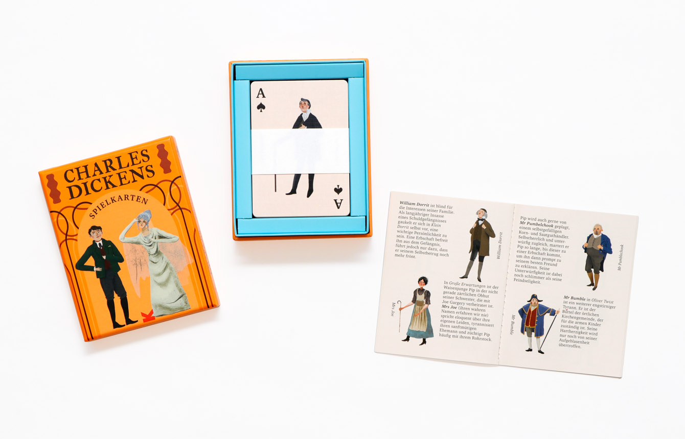 - Beschreibung Spielen Sie Karten mit den Held*innen und Schurk*innen aus Dickens´ Romanen! Dieses wunderschöne Kartendeck zeigt die berühmtesten Figuren aus Dickens´ Welt und enthält zudem ein Booklet mit spannenden Erläuterungen zu den Personen und den Kartenspielen, die immer wieder in Dickens´ Romanen beschrieben werden. Ein Muss nicht nur für Bücherwürmer!