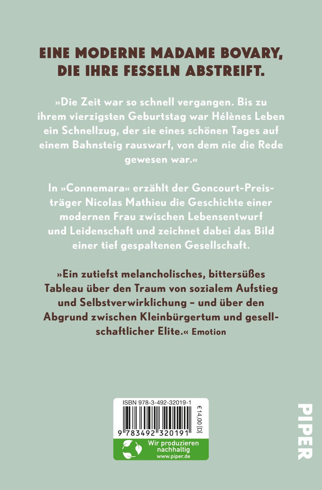 Hélène ist fast vierzig Jahre alt. Sie hat Karriere gemacht, geheiratet, zwei Töchter bekommen und lebt in einem Architektenhaus in der Nähe von Nancy. Sie hat sich den Traum ihrer Jugend erfüllt: abhauen, das Milieu wechseln, erfolgreich sein. Christophe hingegen hat die kleine Stadt im Osten Frankreichs, in der er und Hélène aufgewachsen sind, nie verlassen. Er verkauft Hundefutter und führt ein unentschlossenes kleines Leben. Bis er Hélène wiedertrifft. »Connemara« ist eine Geschichte über das tiefe Unbehagen der Klassenaufsteiger und über die Sehnsucht, noch mal von vorne zu beginnen.