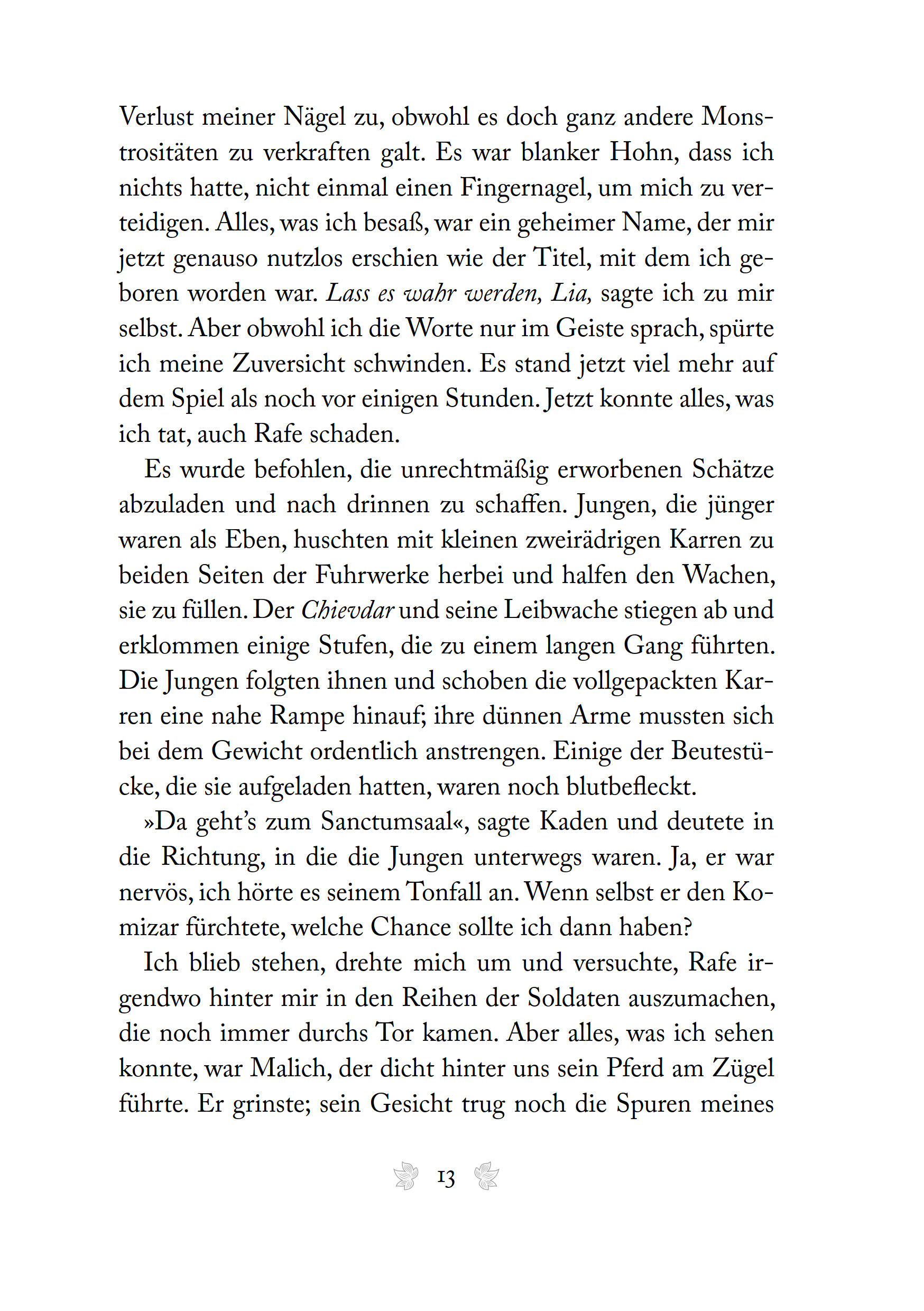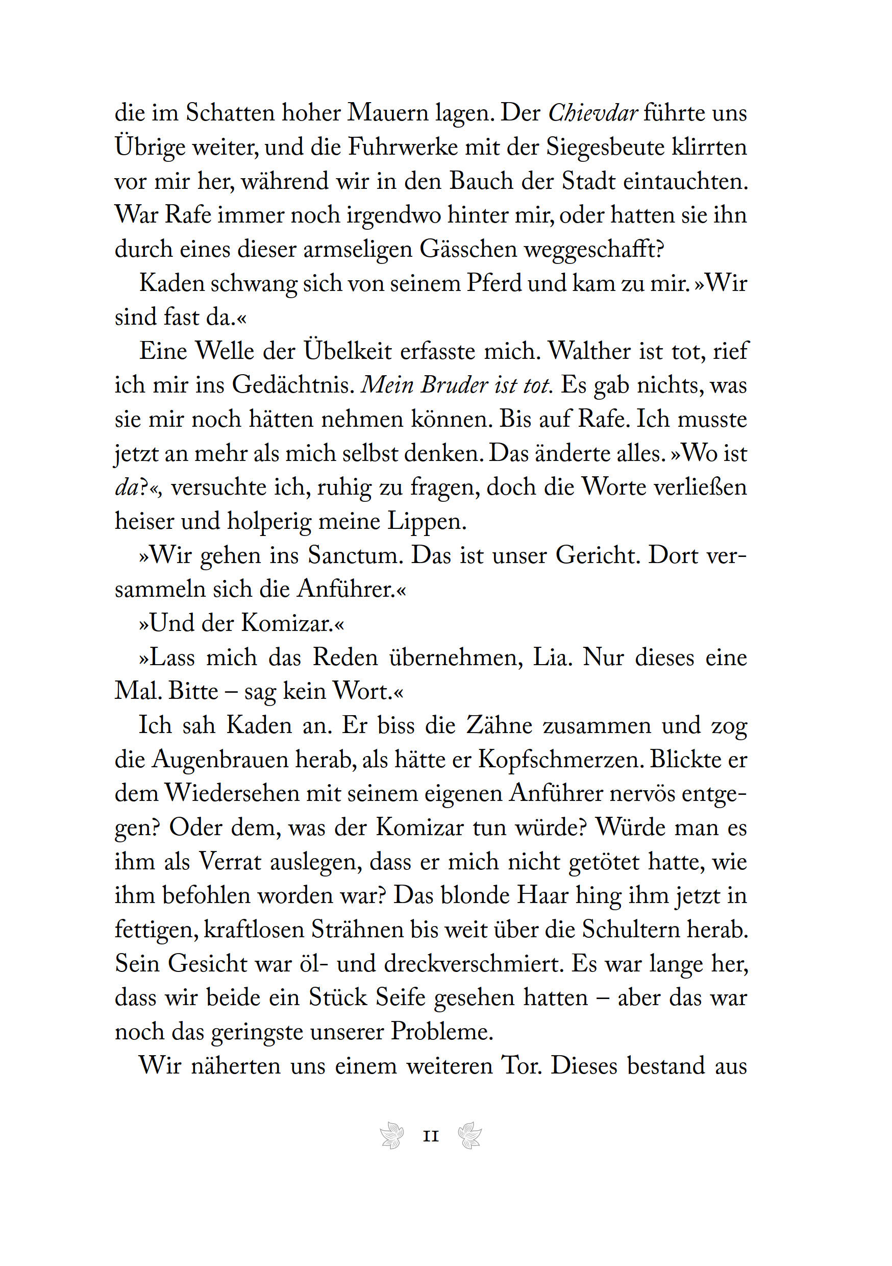 Lia wurde in den Palast von Venda verschleppt, wo sie um ihr Leben fürchten muss. Zwar ist Rafe an ihrer Seite, doch auch er kann sie unter ihren Feinden nicht beschützen. Eine Flucht wäre der einzige Ausweg, scheint jedoch unmöglich. Während Lia im Palast nach neuen Verbündeten sucht, wird sie immer häufiger von der Gabe der Vorsehung heimgesucht. Der Blick in die Zukunft offenbart verstörende Dinge, die nicht nur Lias weiteren Weg, sondern auch das Schicksal des ganzen Volkes von Morrighan beeinflussen könnten. Die Zeit drängt und Lia muss nicht nur wichtige Entscheidungen treffen, sondern zudem einen Weg finden, um endlich ihrem Gefängnis zu entfliehen.