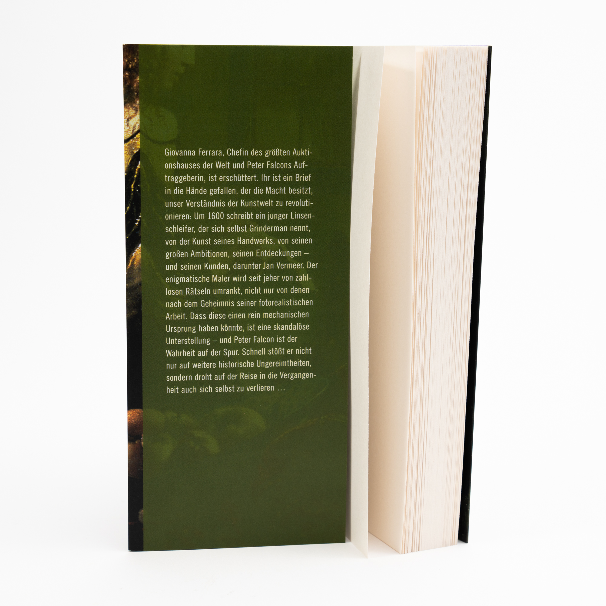 Als Peter Falcon ins Büro der Chefin des Auktionshauses Chrosebys bestellt wird, ahnt er schon, dass sein neuer Auftrag ihm noch mehr abverlangen wird als alles zuvor: Giovanna ist ein Brief in die Hände gefallen, der die Macht besitzt, unser Verständnis der Kunstwelt zu revolutionieren. Um 1600 schreibt ein junger Linsenschleifer, der sich selbst Grinderman nennt, von der Kunst seines Handwerks, von seinen großen Ambitionen – und seinen Kunden, darunter Jan Vermeer. Hat der Meister der Malerei wirklich mit einer Camera Obscura gearbeitet, um seine Gemälde so realistisch werden zu lassen? Und was macht diese Vermutung mit der Trennschärfe zwischen bloßem Handwerk und »wahrer« Schöpfung? Peter Falcon fliegt nach Amsterdam, um den Spuren des mysteriösen Grindermans zu folgen. Doch was so lange versteckt war, möchte nicht gefunden werden ...