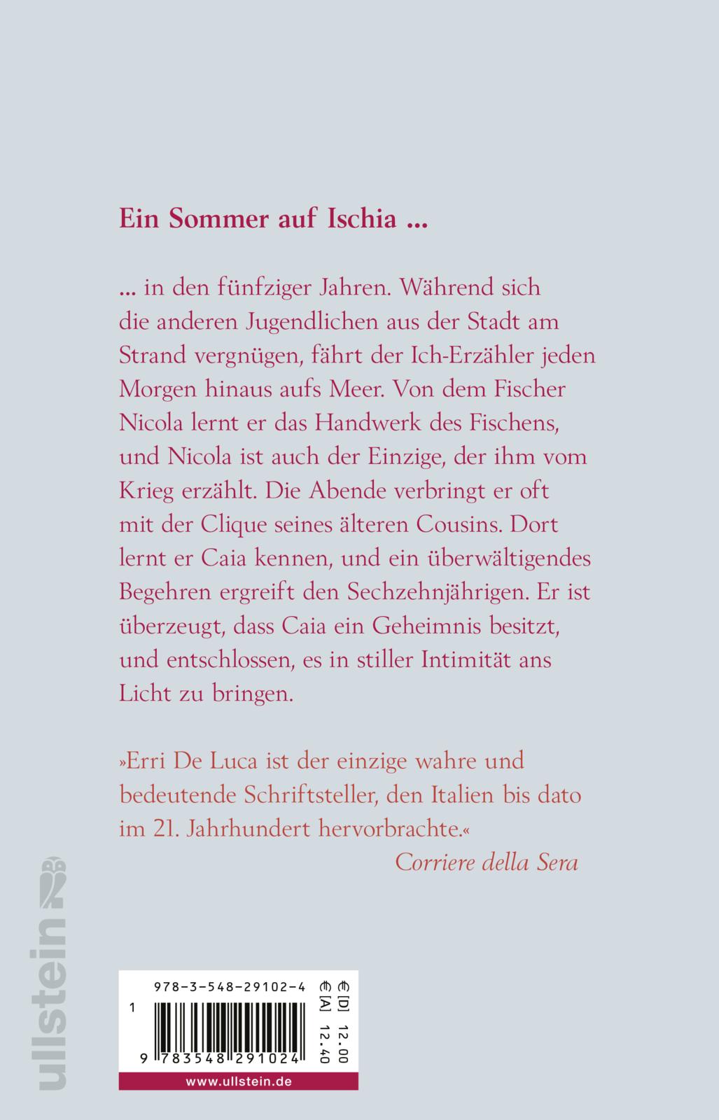Während sich die anderen Jugendlichen aus der Stadt in den Sommerferien auf Ischia am Strand vergnügen, fährt der sechzehnjährige Ich-Erzähler jeden Morgen mit dem Fischer Nicola hinaus aufs Meer. Von ihm lernt er das Handwerk des Fischens, und Nicola ist der Einzige, der seinen Wissensdurst stillt und ihm vom Krieg erzählt. Die Abende verbringt er oft mit der Clique seines älteren Cousins. Dort lernt er Caia kennen, und ein überwältigendes Begehren ergreift den Sechzehnjährigen. Er ist überzeugt, dass Caia ein Geheimnis besitzt, und entschlossen, es in stiller Intimität ans Licht zu bringen.