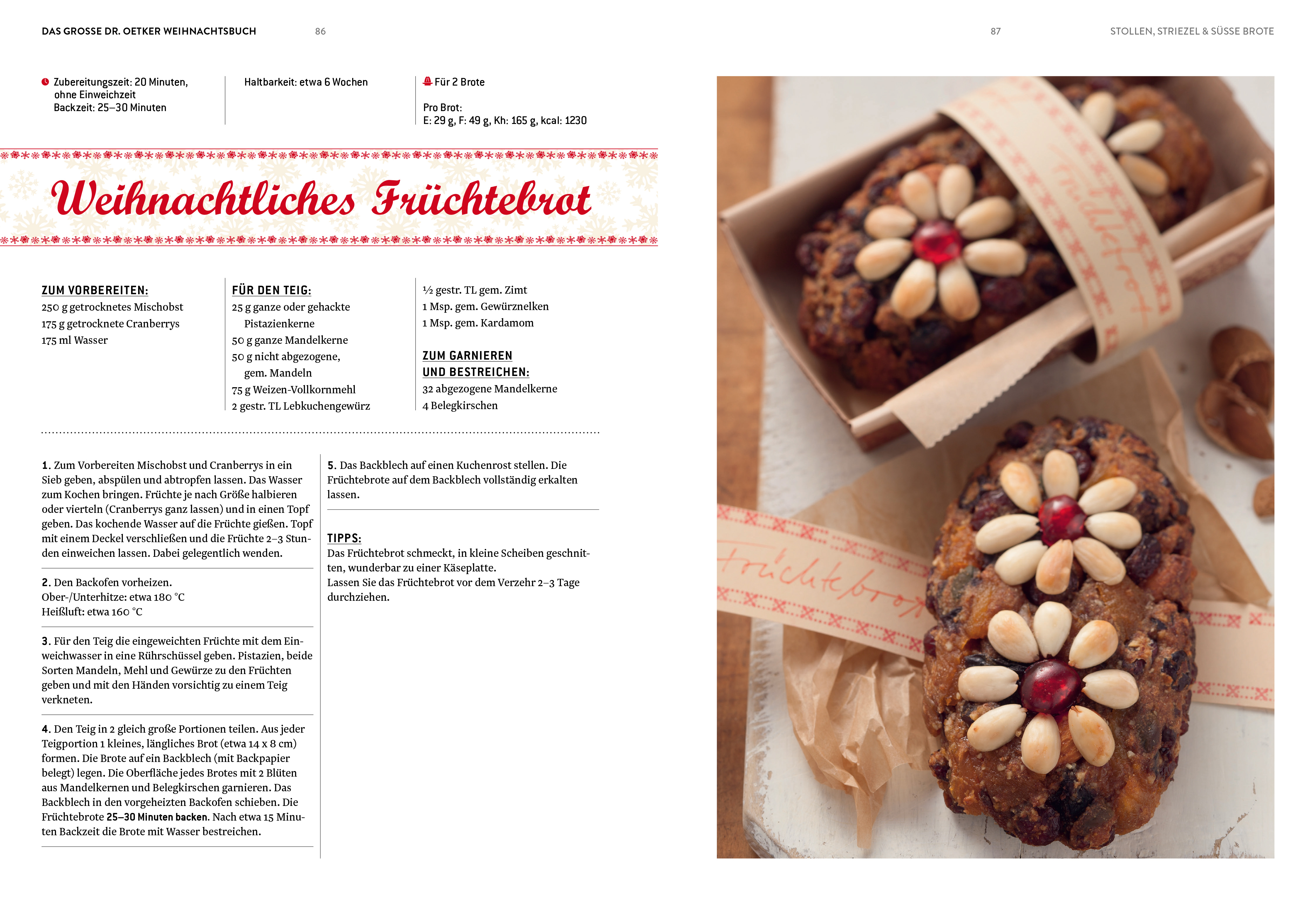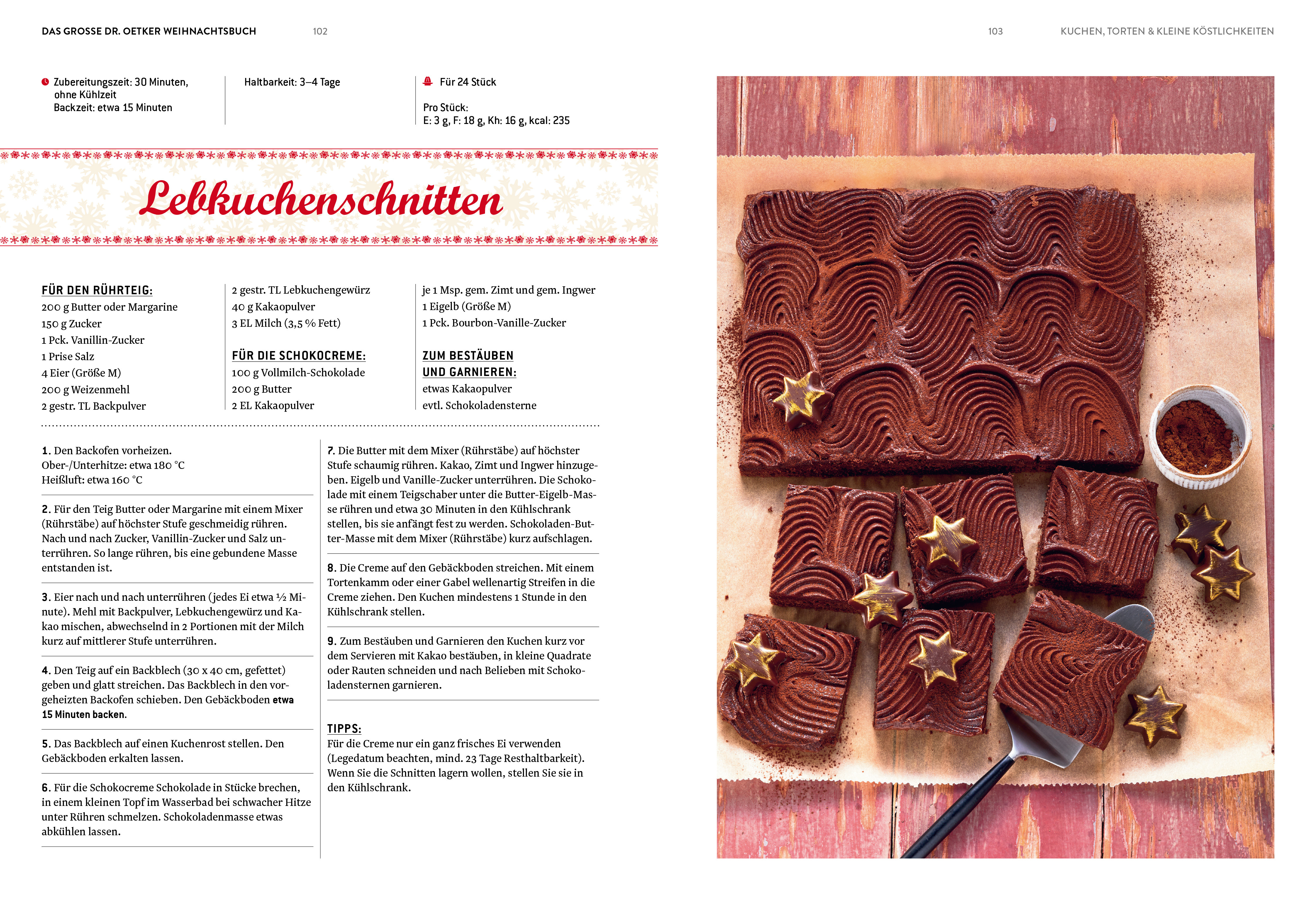 Weihnachtszeit ist Familienzeit. Damit diese magischen Wochen vor Freude glänzende Augen bescheren, finden Sie hier das Rundum-Sorglos-Paket für die Advents- und Weihnachtstage: Praktische Planer für das festliche 3-Gänge-Menü, von der traditionellen Weihnachtsgans bis zum Spekulatius-Parfait und tollen Ideen für Fondues, Raclettes oder einen Brunch lassen erst gar keine Hektik aufkommen. Für ein gelungenes Fest muss man dabei gar nicht bis nach Skandinavien oder New York blicken. Denn die schönsten Bräuche, Traditionen und Gerichte finden Sie zu Hause. Auf 240 Seiten sind alle Rezepte für ein genussvolles Fest versammelt – von klassisch bis ausgefallen. Vanillekipferl, Pfefferkuchenhaus, Nussprinten, Christstollen, gefüllte Honigkuchen, Mohn-Punschtorte oder Lebkuchenlikör. Das ist Weihnachten mit Dr. Oetker.
