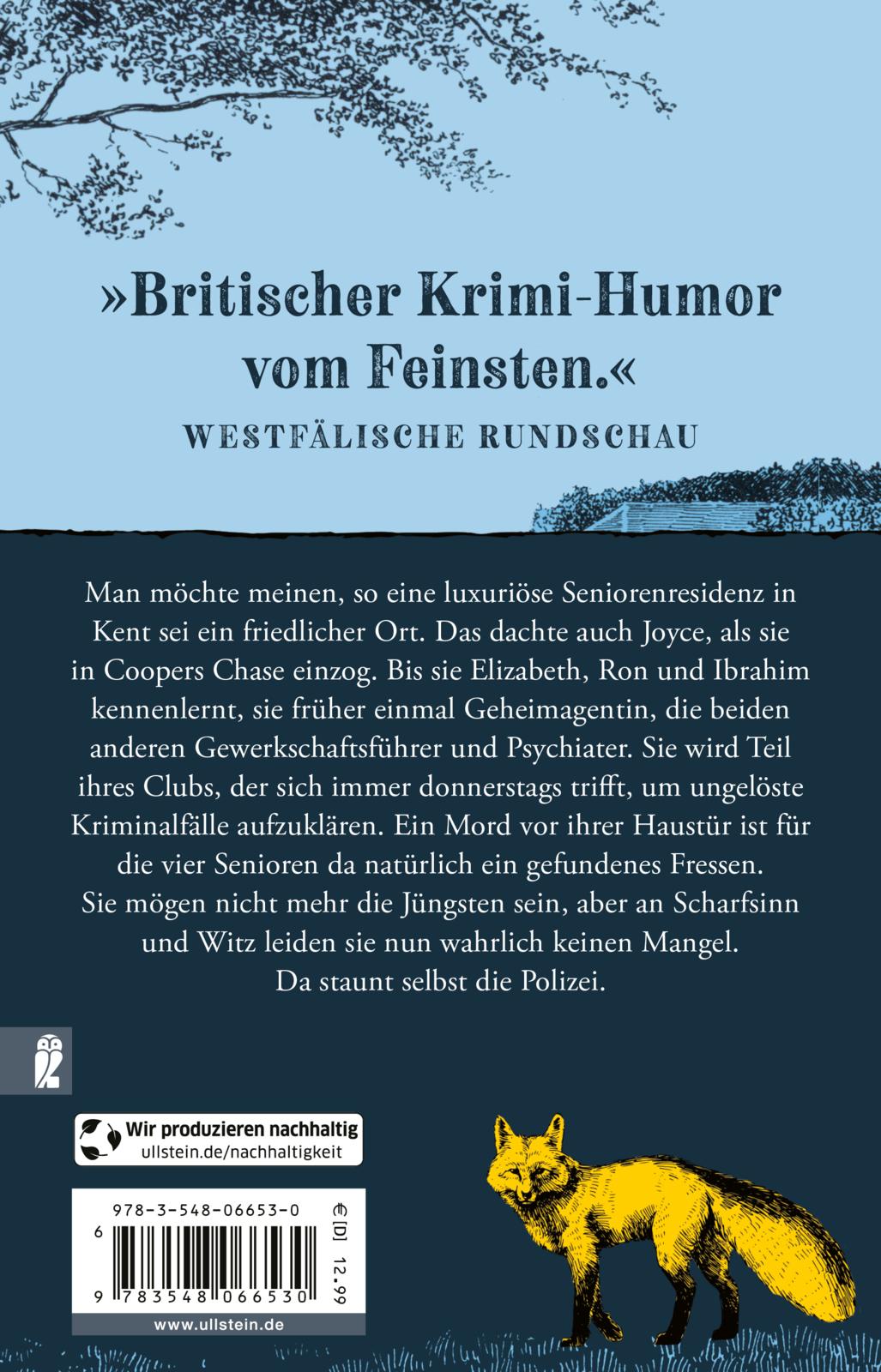 Man möchte meinen, so eine luxuriöse Seniorenresidenz in der idyllischen Grafschaft Kent sei ein friedlicher Ort. Das dachte auch die fast achtzigjährige Joyce, als sie in Coopers Chase einzog. Bis sie Elizabeth, Ron und Ibrahim kennenlernt oder, anders gesagt, eine ehemalige Geheimagentin, einen ehemaligen Gewerkschaftsführer und einen ehemaligen Psychiater. Sie wird Teil ihres Clubs, der sich immer donnerstags im Puzzlezimmer trifft, um ungelöste Kriminalfälle aufzuklären. Als dann direkt vor ihrer Haustür ein Mord verübt wird, ist der Ermittlungseifer der vier Senioren natürlich geweckt, und selbst der Chefinspektor der lokalen Polizeidienststelle kann nur über ihren Scharfsinn staunen.