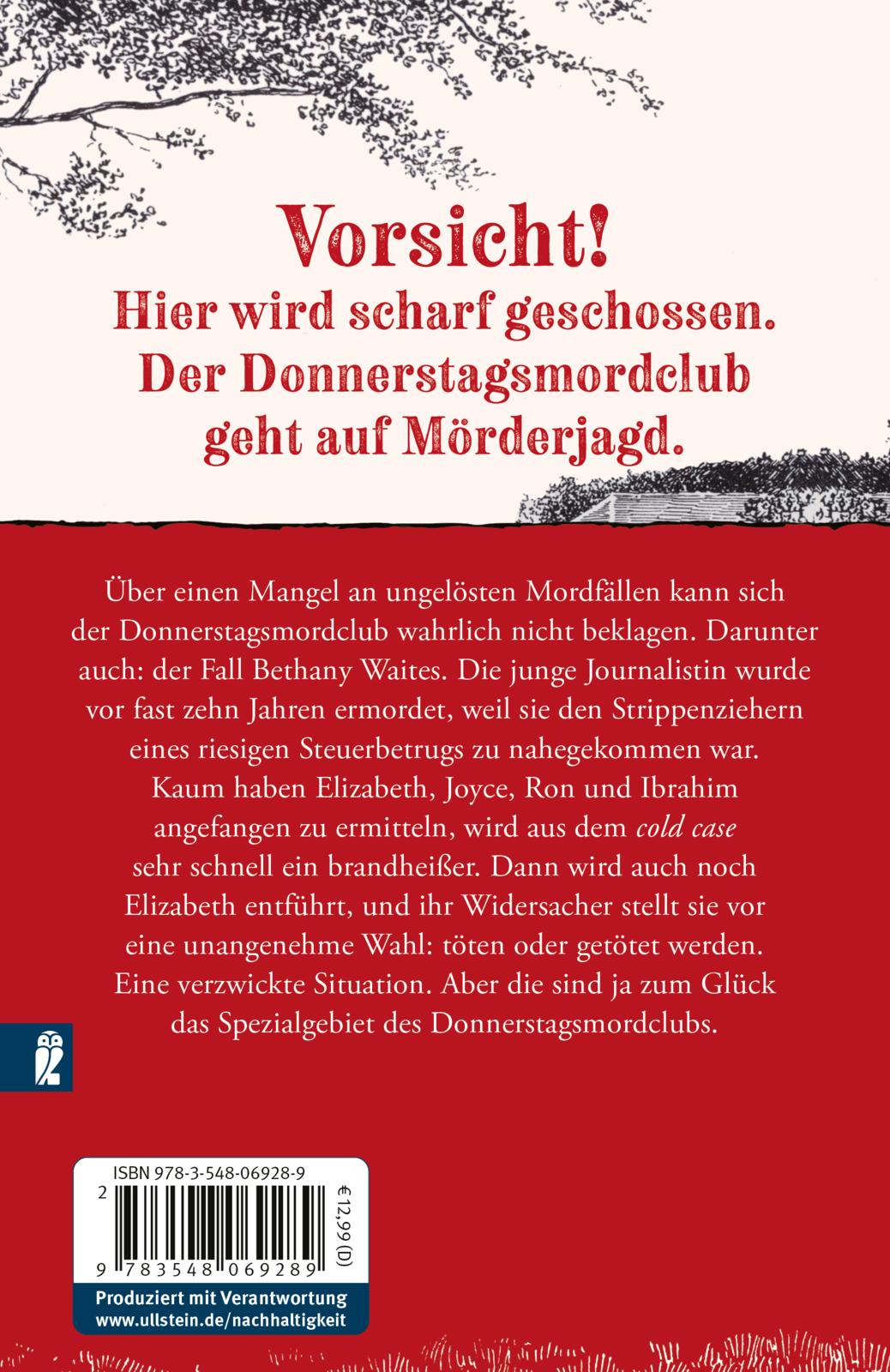 Über einen Mangel an ungelösten Mordfällen kann sich der Donnerstagsmordclub wahrlich nicht beklagen. Darunter auch: der Fall Bethany Waites. Die junge Journalistin wurde vor fast zehn Jahren ermordet, weil sie den Strippenziehern eines riesigen Steuerbetrugs zu nahegekommen war. Kaum haben Elizabeth, Joyce, Ron und Ibrahim angefangen zu ermitteln, wird aus dem cold case sehr schnell ein brandheißer. Dann wird auch noch Elizabeth entführt, und ihr Widersacher stellt sie vor eine unangenehme Wahl: töten oder getötet werden. Eine verzwickte Situation. Aber die sind ja zum Glück das Spezialgebiet des Donnerstagsmordclubs.
