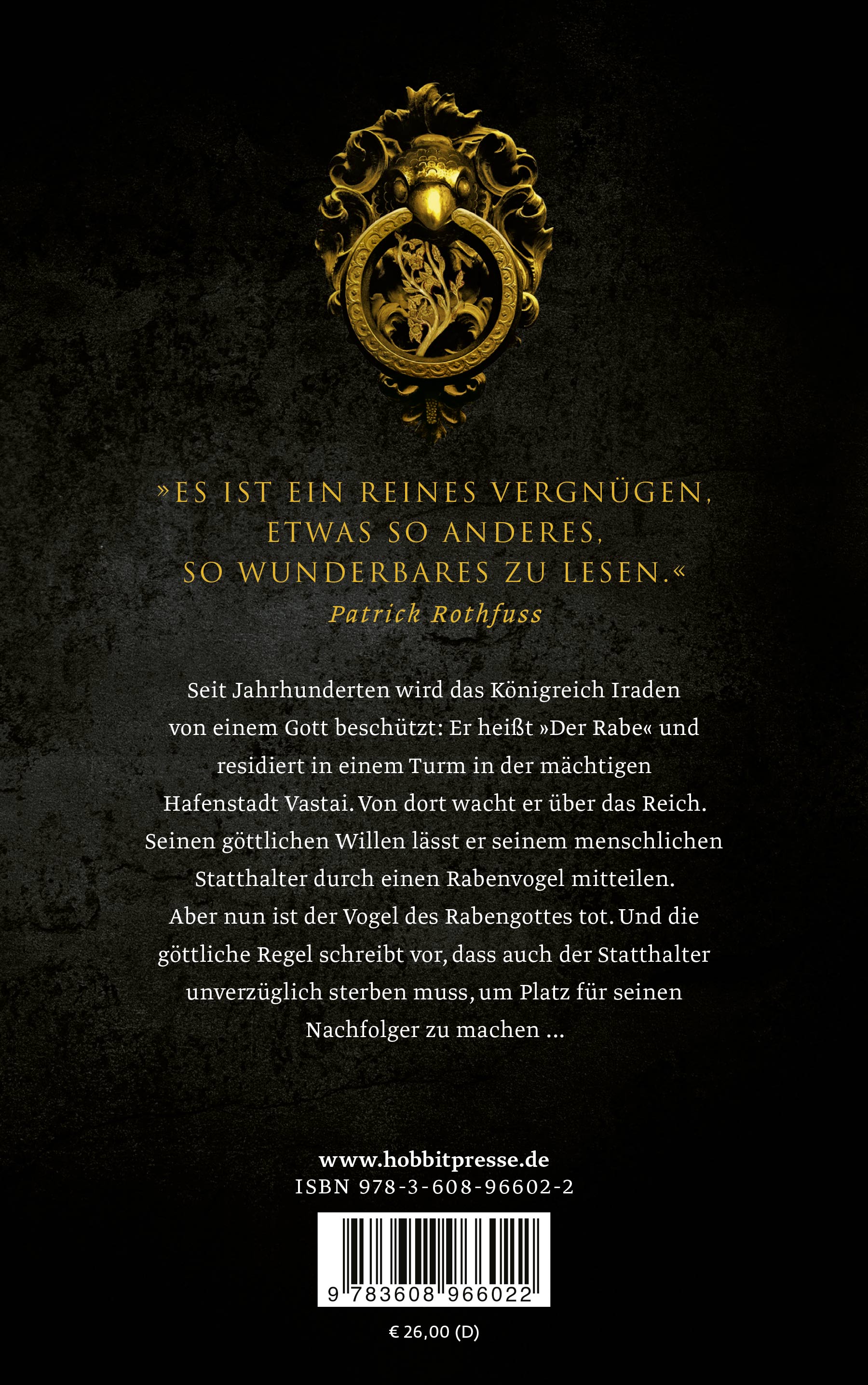 Seit Jahrhunderten wird das Königreich Iraden von einem Gott beschützt: Er heißt der Rabe und residiert in einem Turm in der mächtigen Hafenstadt Vastai. Von dort wacht er über das Reich. Seinen göttlichen Willen lässt er über einen Rabenvogel an seinen menschlichen »Statthalter« kundtun.