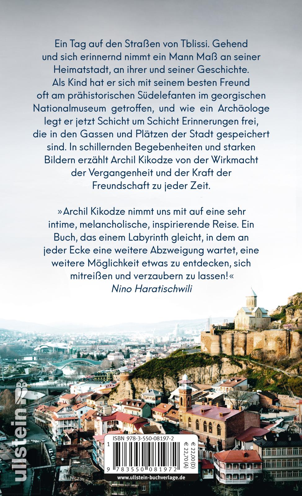 "Archil Kikodze nimmt uns mit auf eine sehr intime, melancholische, inspirierende Reise. Ein Buch, das einem Labyrinth gleicht, in dem an jeder Ecke eine weitere Abzweigung wartet, eine weitere Möglichkeit etwas zu entdecken, sich mitreißen und verzaubern zu lassen!" Nino Haratischwili