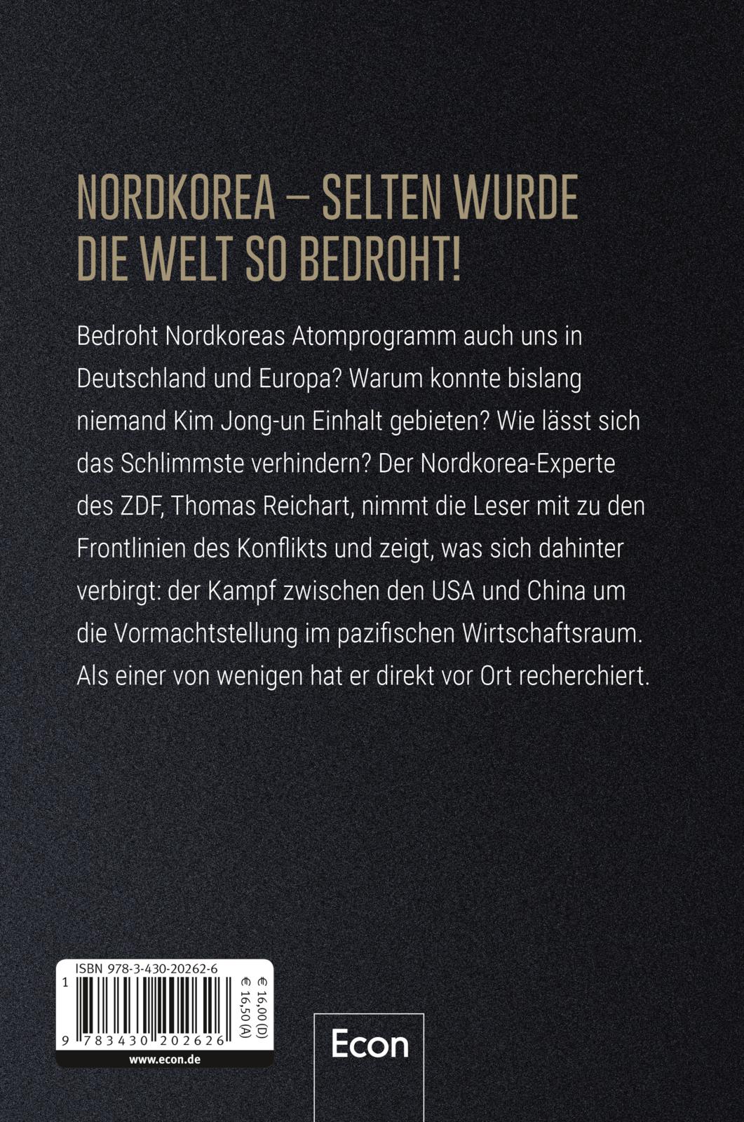 Bedroht Nordkoreas Atomprogramm auch uns in Deutschland und Europa? Warum konnte bislang niemand Kim Jong-un Einhalt gebieten? Wie lässt sich das Schlimmste verhindern? Thomas Reichart nimmt die Leser mit zu den Frontlinien des Konflikts und zeigt, was sich dahinter verbirgt: der Kampf zwischen den USA und China um die Vormachtstellung im pazifischen Wirtschaftsraum. Als einer der wenigen hat er direkt vor Ort recherchiert.