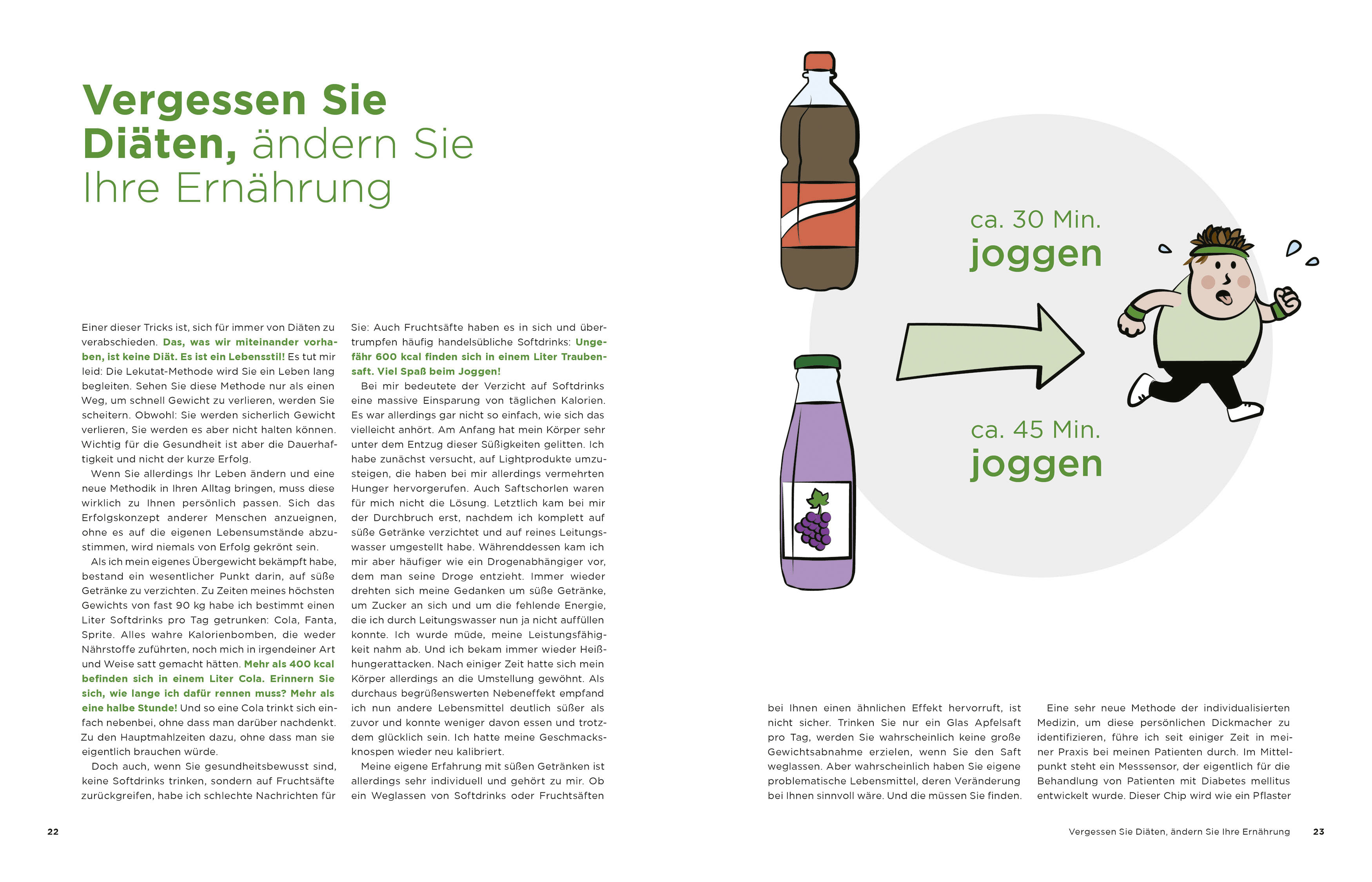 Auf diese Weise begann er, Ungesundes nach und nach durch Gesundes zu ersetzen, mal hier, mal da etwas wegzulassen und so langsam, aber hartnäckig die Kalorien- und Kohlenhydrataufnahme herunterzufahren. Keiner seiner vielen kleinen Schritte war dabei für sich gesehen eine allzu große Herausforderung. Genuss stand auch weiterhin ganz vorn, nur eben mit gesünderen Lebensmitteln und einer besonders raffinierten eigenen Zubereitungsmethode. Inzwischen haben viele seiner Patienten bewiesen, dass dieser einfache Weg zum langersehnten Ziel führt.
