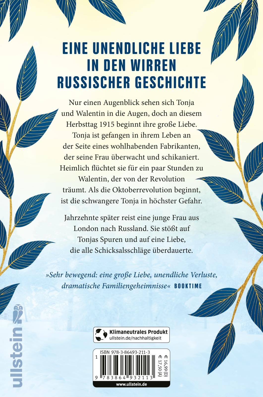 Nur einen Augenblick sehen sich Tonja und Walentin in die Augen, doch an diesem Herbsttag 1915 beginnt ihre unendliche Liebe. Der Bolschewik ist genauso gefangen in seinem Leben wie die wohlhabende Ehefrau eines Fabrikanten, die von ihrem Mann immer wieder eingesperrt wird. Sie kann sich heimlich zu Walentin flüchten, aber am Vorabend der Oktoberrevolution ist die schwangere Tonja in höchster Gefahr. Walentin, schon auf den Weg zu ihr, wird in den Unruhen aufgehalten. Jahrzehnte später reist eine junge Frau aus London nach Moskau, im Gepäck das alte russische Märchenbuch ihrer Mutter und viele Fragen zu ihrer Familiengeschichte. Sie ist auf der Suche nach einer Frau, die schön sein soll wie eine Puppe.