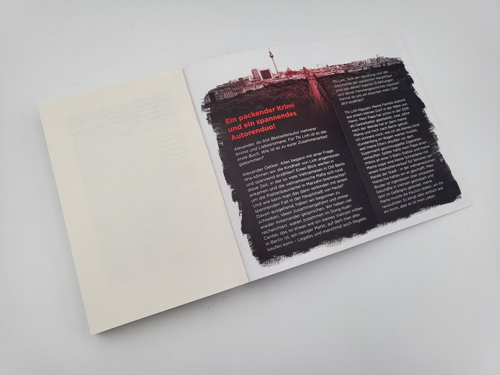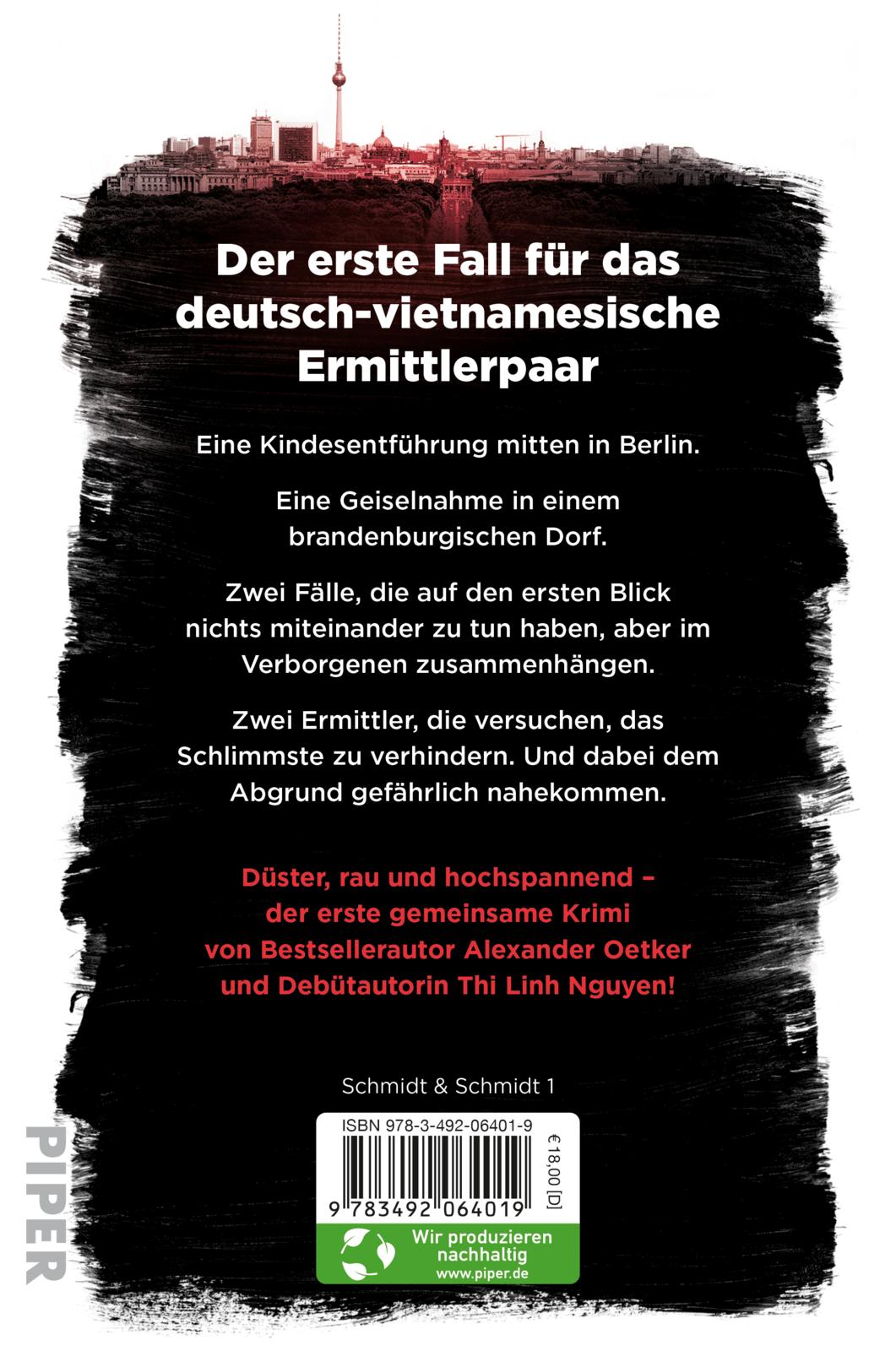 - Beschreibung An einem brütend heißen Sommertag wird in Berlin-Wedding ein kleines Mädchen entführt. Zur gleichen Zeit ereignet sich im brandenburgischen Rheinsberg in einer kleinen Bankfiliale ein Überfall mit Geiselnahme. Zwei Fälle, die auf den ersten Blick nichts miteinander zu tun haben, aber im Verborgenen zusammenhängen. Als an diesem Morgen bei Linh-Thi Schmidt, Deutsch-Vietnamesin und Polizeioberkommissarin in Rheinsberg, und ihrem Ehemann Adam Schmidt, Kriminalhauptkommissar der Berliner Polizei, die Diensthandys klingeln, ahnen sie noch nicht, was ihnen bevorsteht: ein Tag, der sie beide an ihre Grenzen bringt und Erinnerungen weckt an jene alte Schuld, die Adam und Linh-Thi zusammengeführt hat und seither verfolgt.