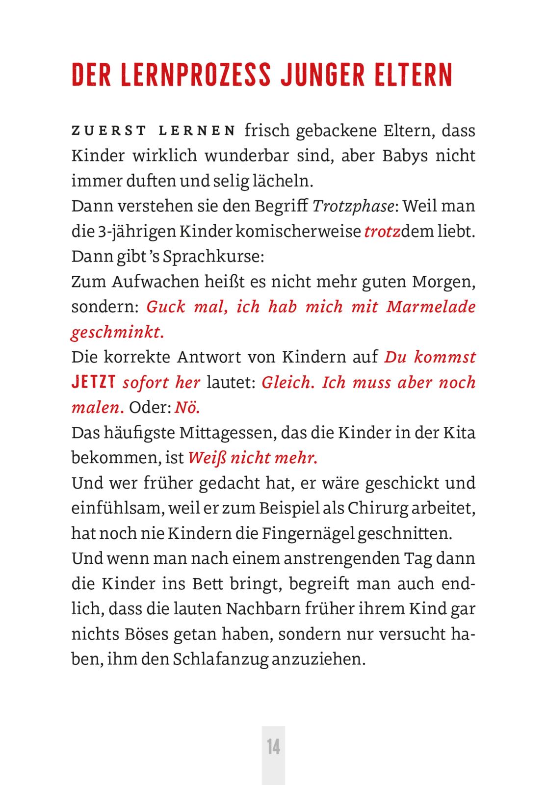 Auch in geschriebener Form dürften sich nahezu alle in seinen humorvollen Alltagsbeobachtungen wiedererkennen. Ob Schuhkauf mit dem Kind, nervige WhatsApp-Gruppen, die Tücken des Homeoffice oder Trash-TV: Mit viel Wortwitz bringt der Comedy-Autor aktuelle Phänomene und die Fallstricke des täglichen Lebens auf den Punkt.