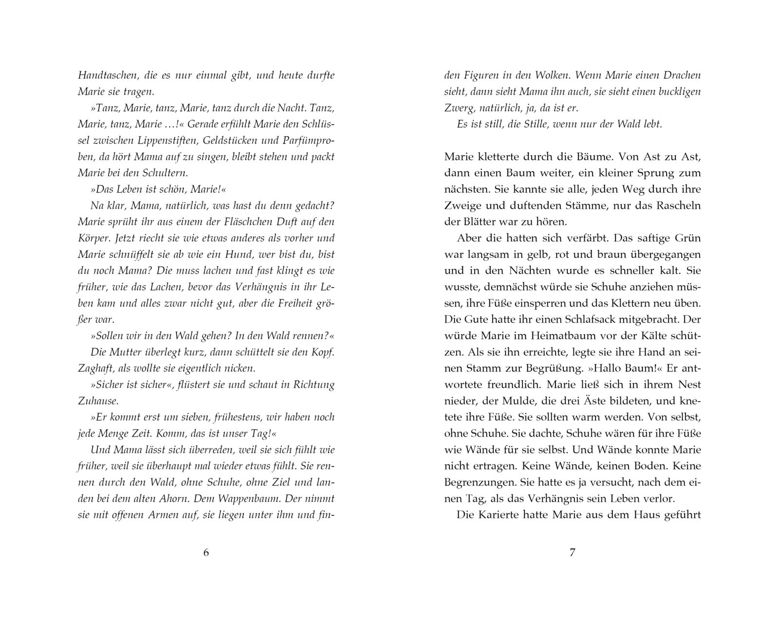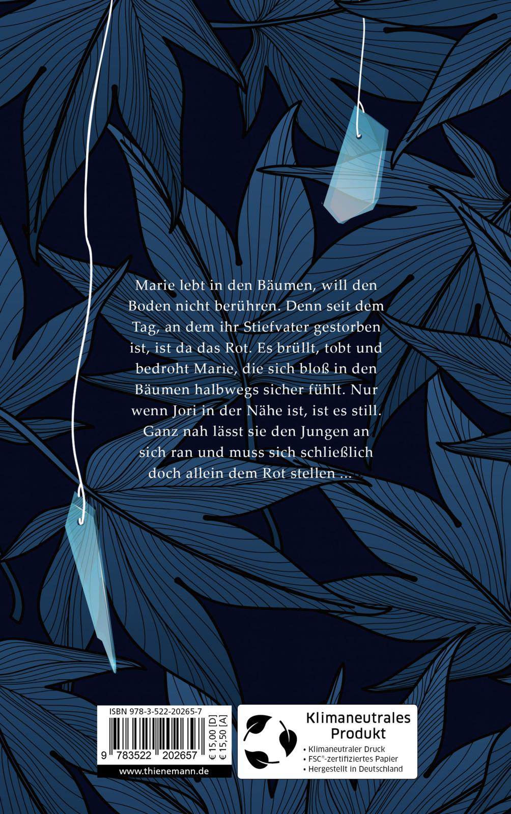 Marie lebt in den Bäumen, will den Boden nicht berühren. In geschlossenen Räumen hält sie es nicht aus, darum ist sie aus jedem Heim, jeder Pflegefamilie abgehauen. Denn seit dem Tag, an dem ihr Stiefvater gestorben ist, ist da das Rot. Es brüllt, tobt und bedroht Marie, die sich nur in den Bäumen halbwegs sicher fühlt. Das Rot ist die Wahrheit, der sich Marie nicht stellen kann. Dass sie es war, die zum Messer gegriffen hat, damit ihr brutaler Stiefvater ihre Mutter nicht umbringt. Doch so sehr Marie auch aneckt, sie ist nicht allein. Da ist Schlappe, die ihr Kuchen bringt, ihre Schwester Lisa, die Frau vom Jugendamt, die sich für sie einsetzt, und Jori, den Marie ganz nah an sich ranlässt. Und schließlich kann sie sich dem Rot stellen.