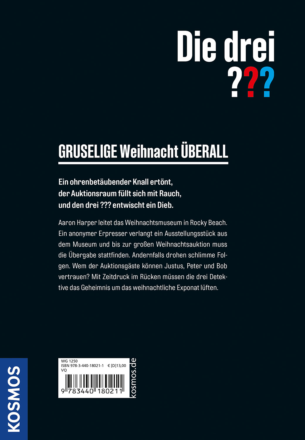 - Beschreibung Im Museum von Aaron Harper ist immer Weihnachten. An 365 Tagen im Jahr werden hier die schönsten Tage des Jahres gefeiert. Ein ganz besonderer Ort, der bei den Einwohnern von Rocky Beach sehr beliebt ist. Als der Besitzer erpresst wird, kommen die drei ??? ins Spiel. Wer ist ins Weihnachtsmuseum eingebrochen? Warum hat es die Person auf ein ganz bestimmtes Sammlerstück abgesehen? Die Detektive Justus, Peter und Bob ermitteln in einem schaurig-spannenden Fall in 24 Kapiteln. Ein Adventskalender zum Lesen, der die Zeit bis Weihnachten verkürzt. Mit tollen Extra-Informationen zu Weihnachtsbräuchen auf der ganzen Welt.