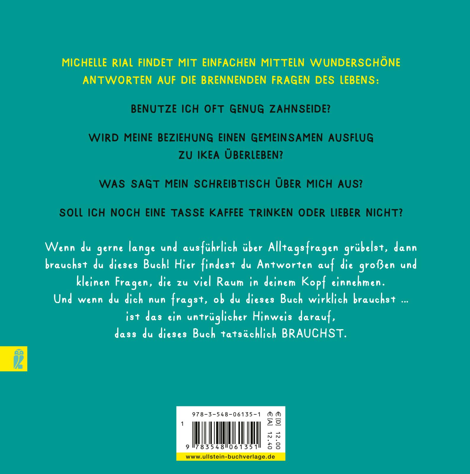 Wenn Sie gerne lange und ausführlich über Alltagsfragen grübeln, dann brauchen Sie dieses Buch! Hier finden Sie Antworten auf die großen und kleinen Fragen, die zu viel Raum in Ihrem Kopf einnehmen. Und wenn Sie sich nun fragen, ob Sie dieses Buch wirklich brauchen ... ist das ein untrüglicher Hinweis darauf, dass Sie dieses Buch tatsächlich BRAUCHEN.