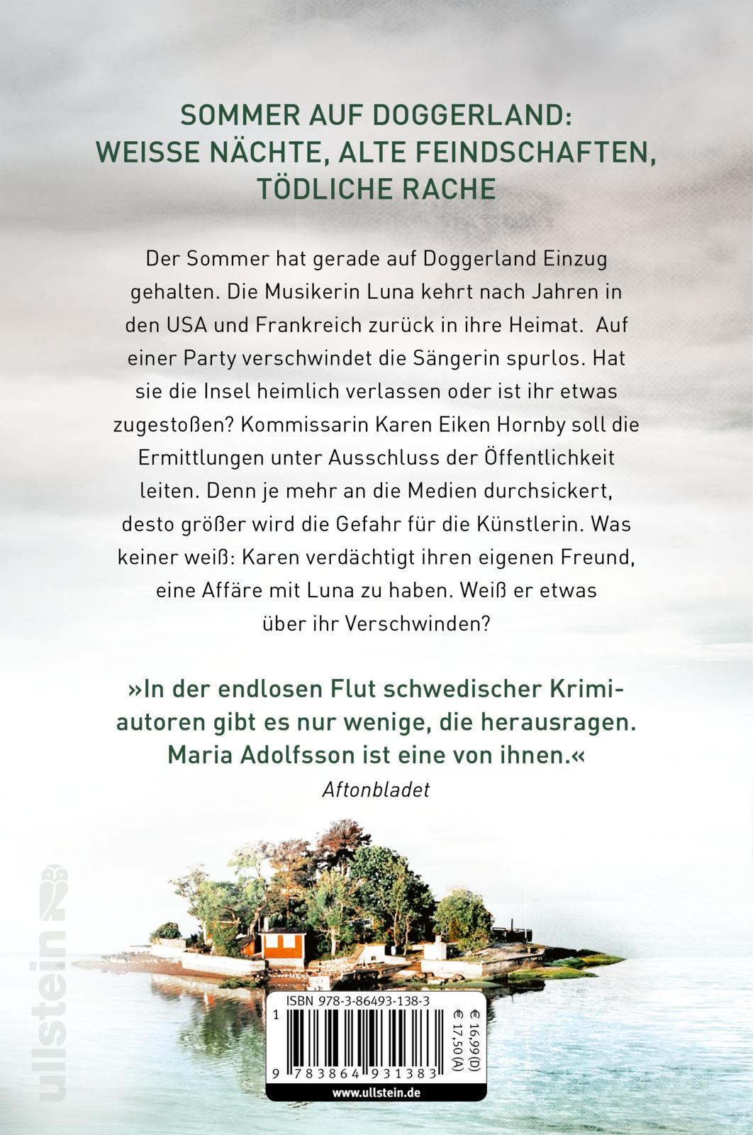 Der Sommer hat gerade auf Doggerland Einzug gehalten. Die Musikerin Luna kehrt nach Jahren in den USA und Frankreich zurück in ihre Heimat. Auf einer Party verwindet die Sängerin spurlos. Hat sie die Insel heimlich verlassen oder ist ihr etwas zugestoßen? Kommissarin Karen Eiken Hornby soll die Ermittlungen unter Ausschluss der Öffentlichkeit leiten. Denn je mehr an die Medien durchsickert, desto größer wird die Gefahr für die Künstlerin. Was keiner weiß: Karen verdächtigt ihren eigenen Freund, eine Affäre mit Luna zu haben. Weiß er etwas über ihr Verschwinden?