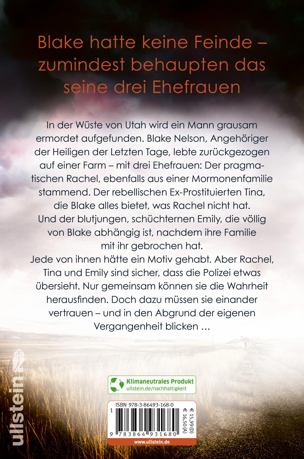 In der Wüste von Utah wird ein Mann grausam ermordet und verstümmelt aufgefunden. Blake Nelson, Angehöriger der Heiligen der Letzten Tage, lebte zurückgezogen auf einer Farm in der Wildnis – mit drei Ehefrauen: Der pragmatischen Rachel, ebenfalls aus einer Mormonenfamilie stammend. Der rebellischen Ex-Prostituierten Tina, die Blake alles bietet, was Rachel nicht hat. Und der blutjungen, schüchternen Emily, die völlig von Blake abhängig ist, nachdem ihre Familie mit ihr gebrochen hat.