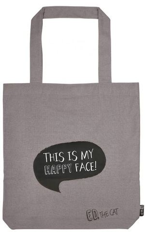 Huch, hat Kater Ed heute mal wieder einen schlechten Tag gehabt – oder guckt der etwa immer so? Auf der Vorderseite des grauen Shoppers guckt der schwarze Kater ganz schön grimmig. Der Schriftzug in Eds Sprechblase auf der Rückseite klärt auf: „This is my happy face!“ Na, dann ist ja gut – aber wenn der glückliche Ed, the Cat schon so guckt, wollen wir uns gar nicht vorstellen, wie finster sein Gesichtsausdruck wohl bei schlechter Laune aussieht... Perfekt für alle Katzenfans und diejenigen, die sich lieber innerlich freuen, als ihre gute Laune mit einem Lächeln zu zeigen.