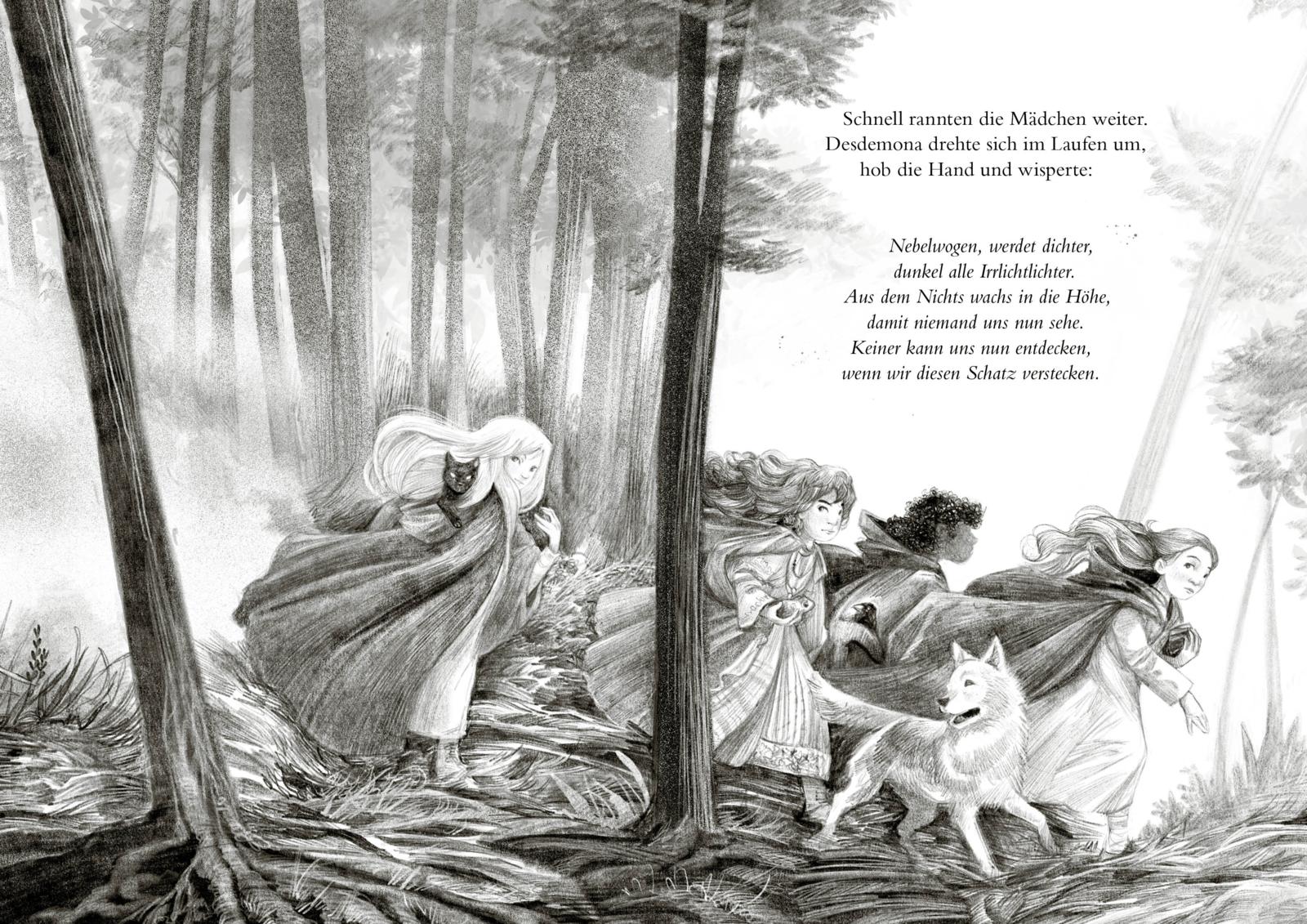 Willow und ihre Hexenfreundinnen sind begeistert, als sie durch Zufall einen Hinweis auf einen Schatz finden, den Tante Alwina für sie versteckt hat. Was sich zunächst anfühlt wie ein Spiel, wird allerdings bald ernst. Und nicht mal Grimmoor, ihr sonst so redseliges Hexenbuch, möchte den Freundinnen helfen. Als dann auch noch ein geheimnisvoller Junge mit einer Geige auftaucht und ein kleiner sonderbarer Waldgeist erwacht, merken die Mädchen, dass irgendetwas nicht mit rechten Dingen zugeht. Alle scheinen plötzlich hinter diesem Schatz her zu sein - selbst ein uralter Magier findet den Weg in Willows Wald. Doch wem kann Willow trauen? Den Junghexen wird nach und nach bewusst, dass dies einer der wertvollsten Schätze der Welt sein muss. Doch werden sie es schaffen, als Erste das Geheimnis zu lüften?