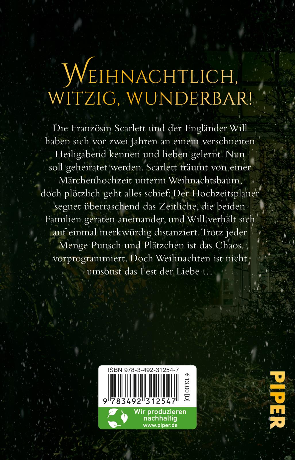 Die Französin Scarlett und der Engländer Will haben sich an einem verschneiten Heiligabend kennen und lieben gelernt. Jetzt, genau zwei Jahre später, soll geheiratet werden. Scarlett träumt von einer Märchenhochzeit unterm Weihnachtsbaum, doch plötzlich geht alles schief: Der Hochzeitsplaner segnet überraschend das Zeitliche, die beiden Familien geraten aneinander, und Will verhält sich auf einmal merkwürdig distanziert … Trotz jeder Menge Punsch und Plätzchen ist das Chaos vorprogrammiert. Doch Weihnachten ist nicht umsonst das Fest der Liebe …