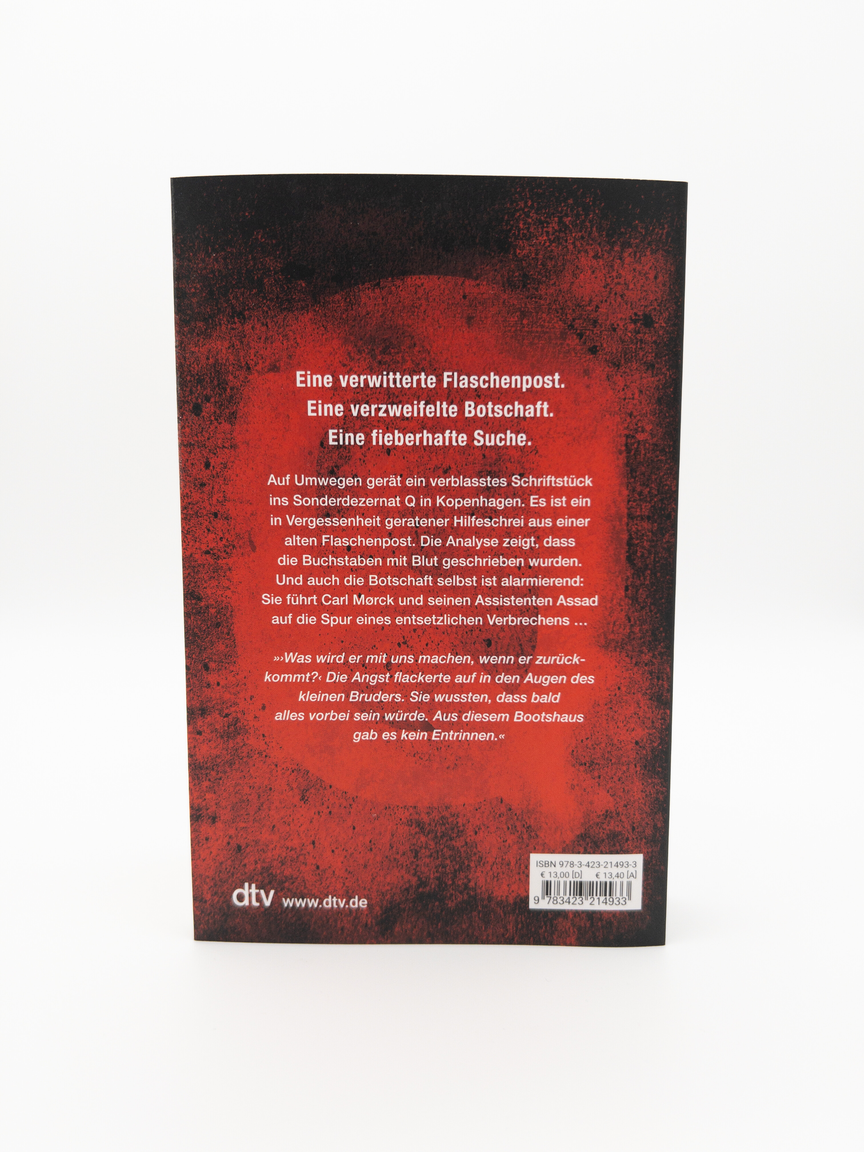 - Beschreibung Eine verwitterte Flaschenpost. Eine verzweifelte Botschaft. Eine fieberhafte Suche.Der dritte Fall für Kriminalkommissar Carl Mørck und sein Team des Sonderdezernats Q»›Was wird er mit uns machen, wenn er zurückkommt?‹ Die Angst flackerte auf in den Augen seines Bruders. Sie wussten, dass bald alles vorbei war. Aus diesem Bootshaus gab es kein Entrinnen.«Niemand hatte die verwitterte Flaschenpost beachtet, der Hilfeschrei in ihrem Inneren war ungehört verhallt. Jahre später gelangt das verblasste Schriftstück ins Sonderdezernat Q in Kopenhagen, die dänische Mordkommission für Cold Cases. Die Materialanalyse zeigt, dass die Botschaft mit menschlichem Blut geschrieben wurde. Die Entzifferung der Buchstaben führt Carl Mørck und seinen Assistenten Assad auf die Spur eines entsetzlichen Verbrechens – und in Bereiche der Gesellschaft, die ihnen beiden einigermaßen fremd erscheinen … Die große skandinavische Bestseller-Reihe – spannender geht es nicht»Eine große Thriller-Serie.« stern.de»Atemberaubend spannend und klug: Mit diesem Krimi übertrifft Adler-Olsen sogar die beiden hervorragenden Vorgänger.« Westdeutsche Zeitung»Jussi Adler-Olsens Markenzeichen sind ausführliche Schilderungen brutaler Verbrechen, genaue Charakterstudien seiner Figuren und eine gute Portion Humor.« Tobias Wenzel in ›NDR Kultur‹Neben der Carl-Mørck-Reihe sind bei dtv außerdem folgende Titel von Jussi Adler-Olsen erschienen:›Das Alphabethaus‹›Das Washington-Dekret‹›Takeover‹›Miese kleine Morde‹