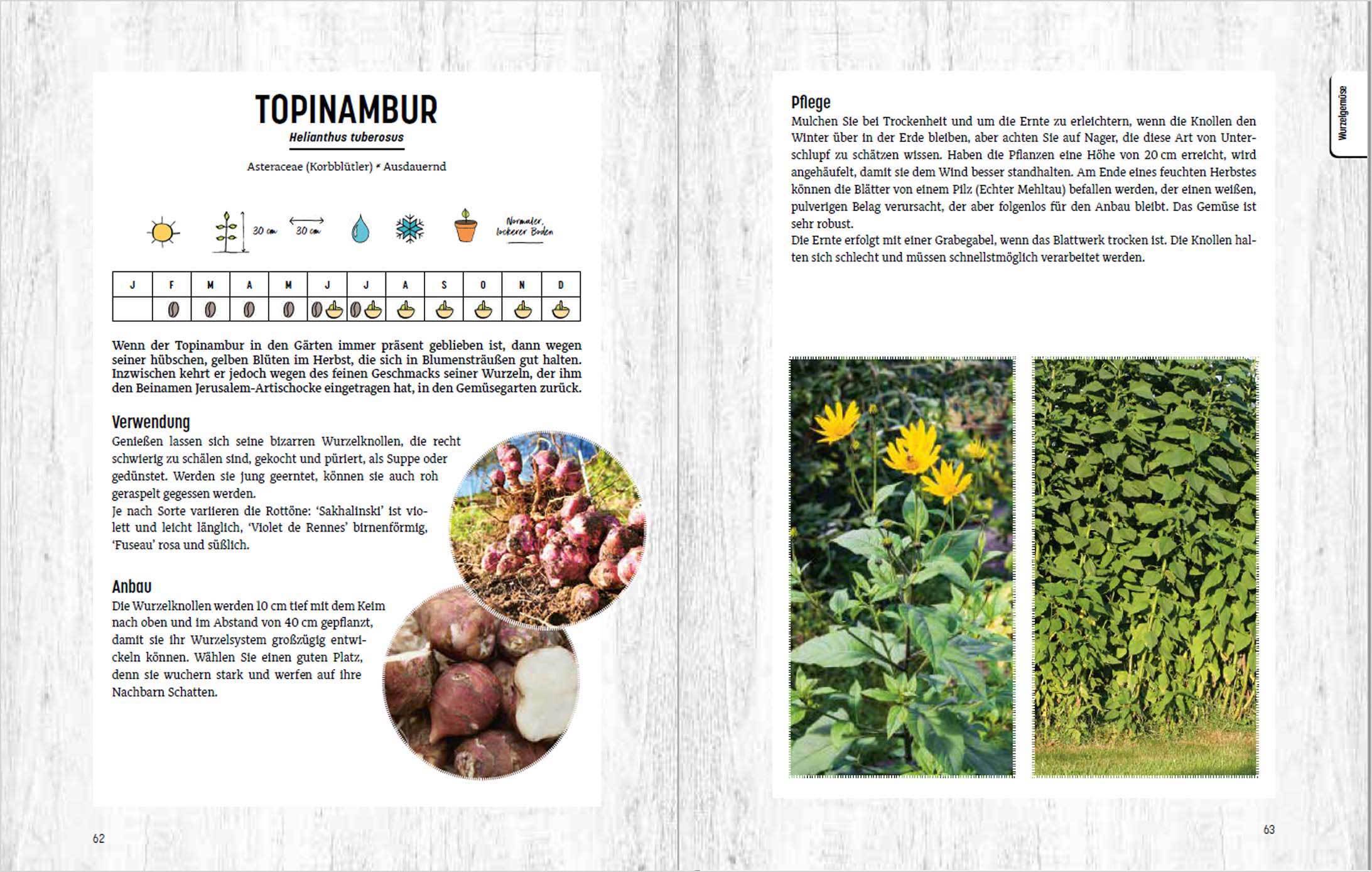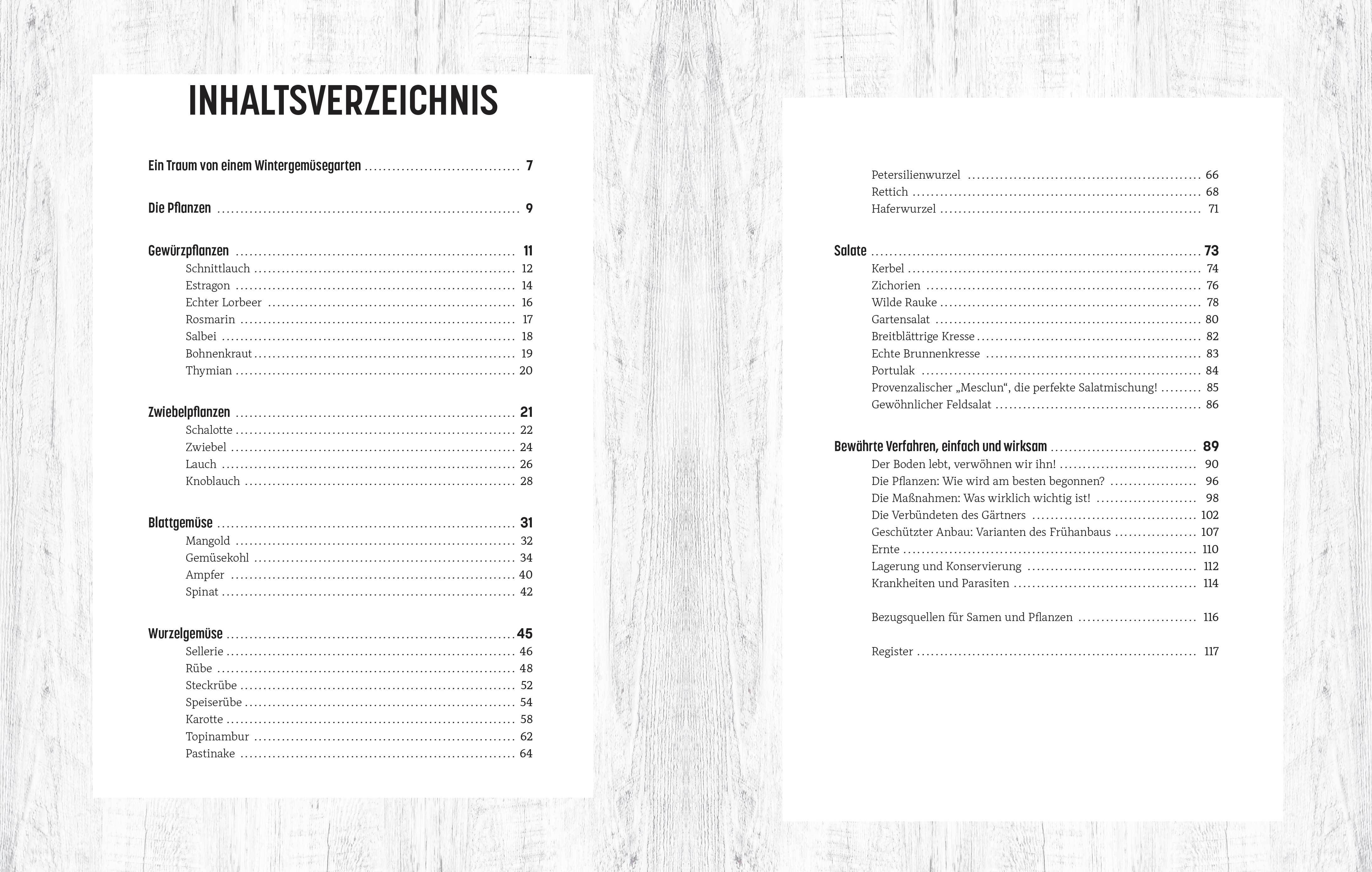 Viele Gärten liegen im Winter im Dornröschenschlaf. Dabei lässt sich auch in der kalten Jahresezeit frisches Gemüse ernten. Mit ein wenig Planung im Frühjahr kann man im Winter seinen Speiseplan mit selbst angebauten Karotten, Rote Bete, Spinat oder Rübchen bereichern. Die Porträts von 34 geeigneten Wurzel-, Kohl- und Blattgemüsen, Kräutern und Salaten helfen bei der Auswahl. Dazu gibt es praktische Hinweise zu Anbau, Pflege, Ernte und Lagerung der Gemüse. Guten Appetit!
