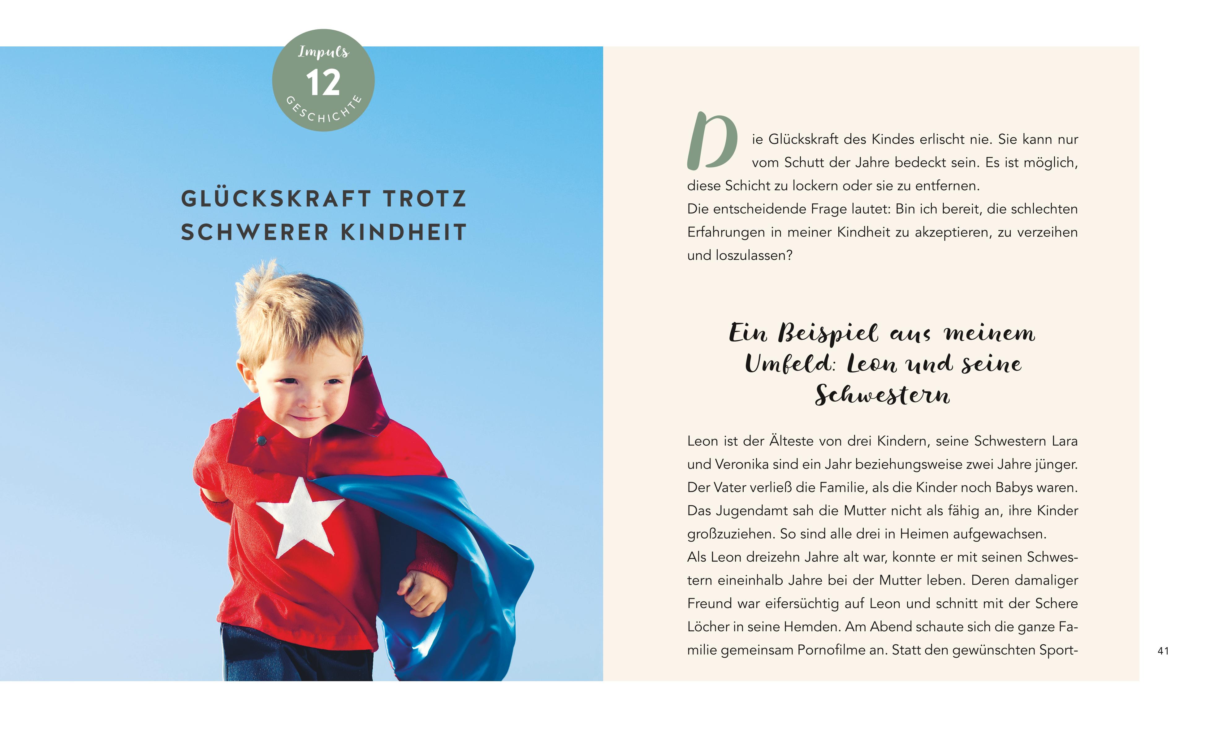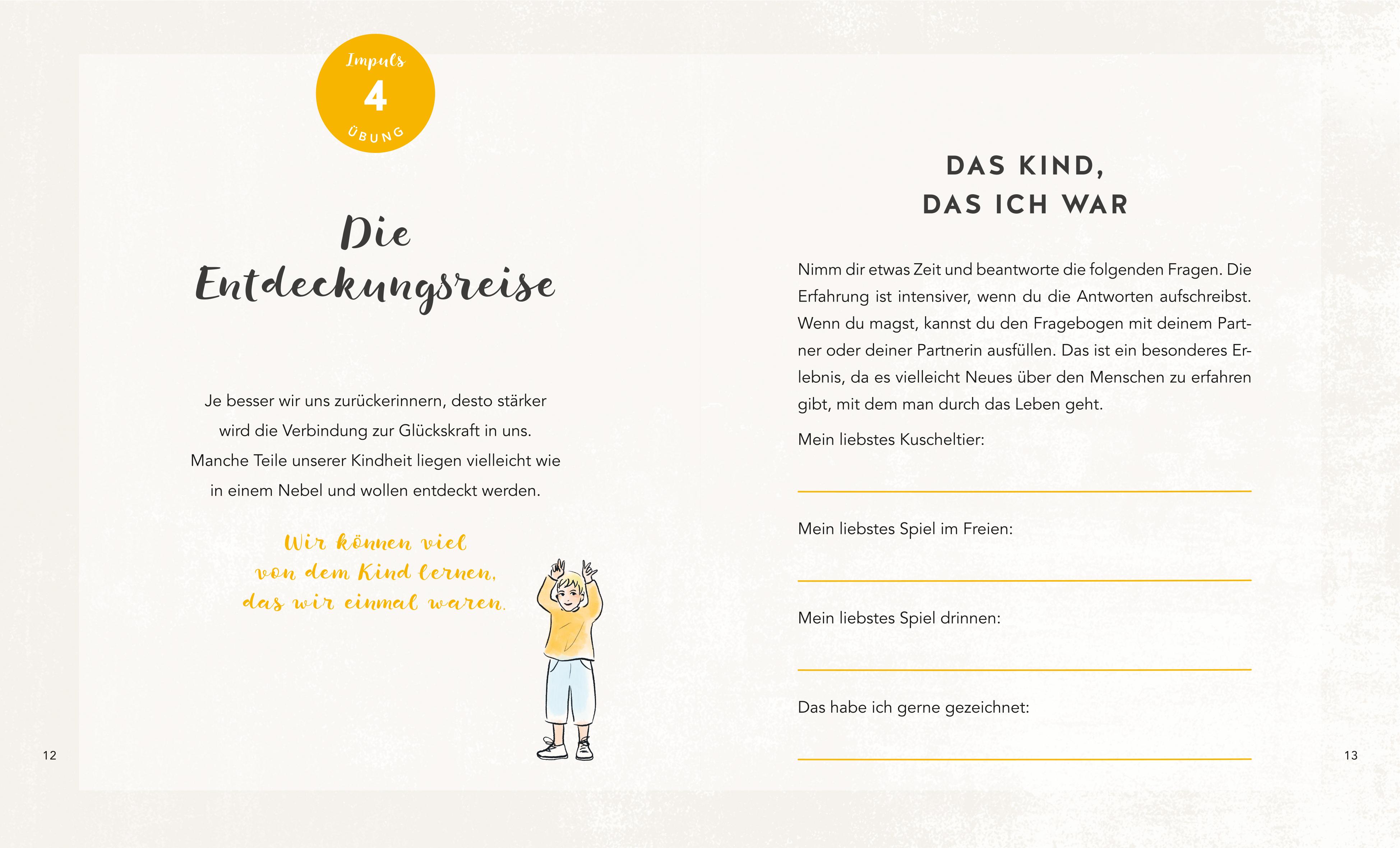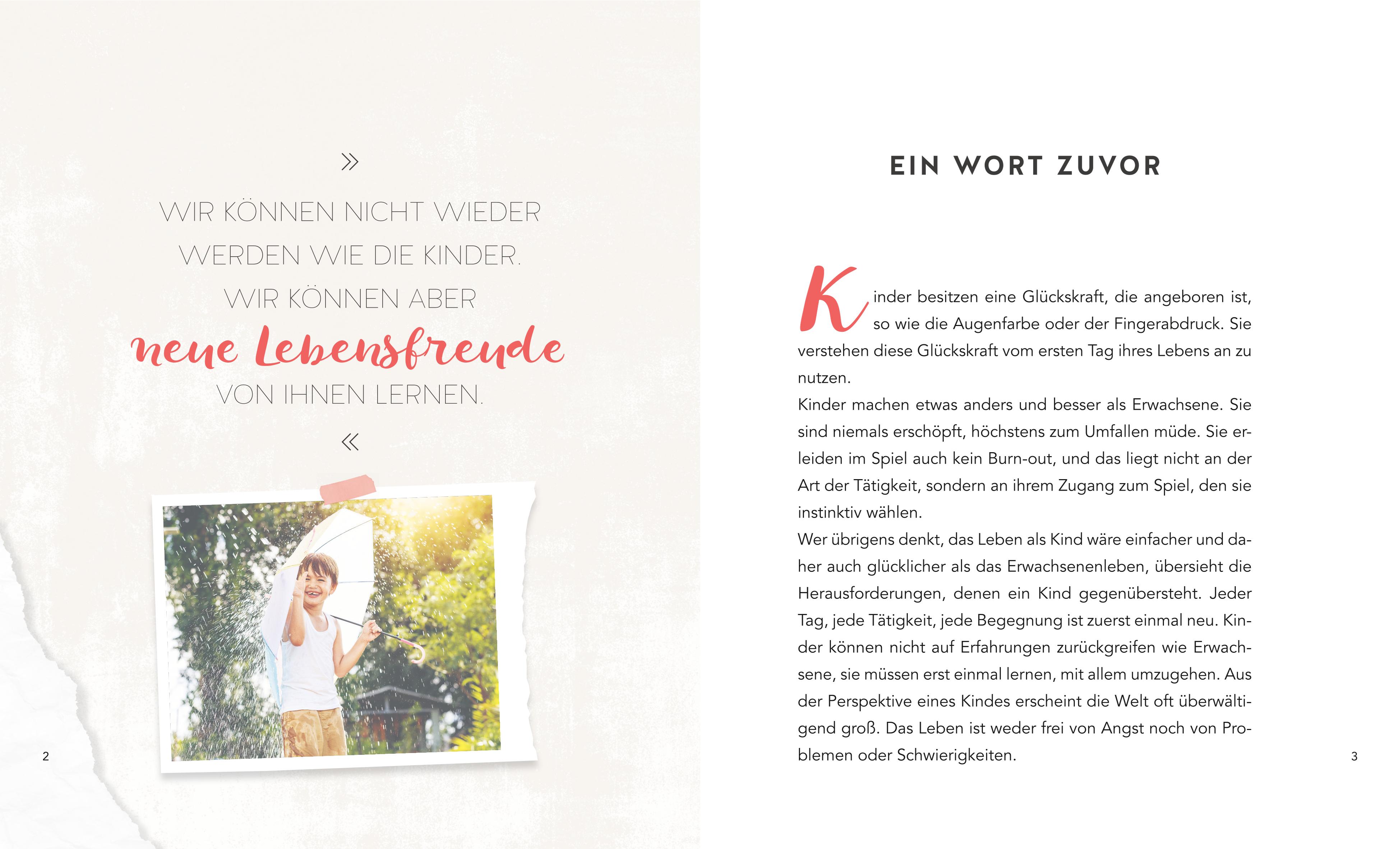 Kinder laufen staunend und voller Neugier durchs Leben. Sie lachen lauthals oder weinen bittere Tränen. Sie sagen, was sie denken, und haben alle Zeit der Welt. Sie sind niemals erschöpft, höchstens zum Umfallen müde. Kinder machen von Natur aus etwas anders als Erwachsene. Sie nutzen eine Glückskraft, die uns allen zu eigen ist, die wir im Zuge des Älterwerdens jedoch aus dem Blick verloren haben.