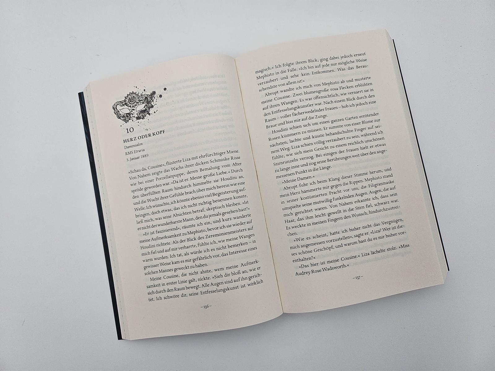 - Beschreibung Audrey Rose und Thomas stecken nicht zum ersten Mal in einer Mordermittlung. Diesmal führt sie ihr Weg auf einem Ozeandampfer nach New York. Eine Truppe Zirkusartisten sorgt für Unterhaltung an Bord, doch das Vergnügen ist von kurzer Dauer. Bald erschüttert eine Reihe brutaler Morde die Passagiere. Jeder ist verdächtig, auch der undurchsichtige Entfesselungskünstler Harry Houdini. Der einzige Fluchtweg führt in den dunklen Abgrund der See. Es liegt an Audrey Rose und Thomas, den Mörder zu überführen, bevor sie die Nächsten auf seiner Liste sind.