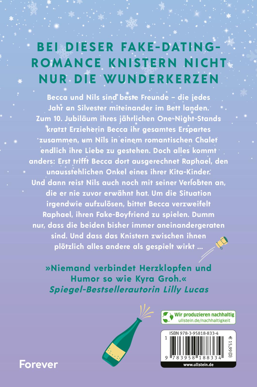 Becca und Nils sind beste Freunde – die jedes Jahr an Silvester miteinander im Bett landen. Zum zehnten Jubiläum ihres jährlichen One-Night-Stands kratzt Erzieherin Becca ihr gesamtes Erspartes zusammen, um Nils in einem romantischen Alpenchalet endlich ihre Liebe zu gestehen. Doch alles kommt anders: Erst trifft Becca dort ausgerechnet Raphael, den unausstehlichen Onkel eines ihrer Kita-Kinder. Und dann reist Nils auch noch mit seiner Verlobten an, die er nie zuvor erwähnt hat.