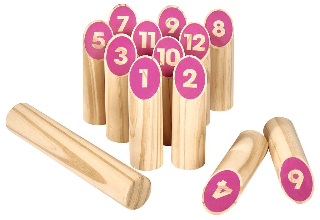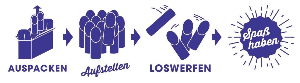 - Einfach die 12 Spielhölzer aufstellen, eine Wurflinie festlegen und los geht’s.