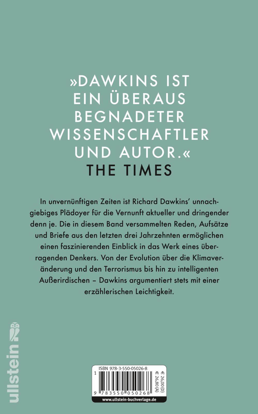 In unvernünftigen Zeiten ist Richard Dawkins‘ unnachgiebiges Plädoyer für die Vernunft aktueller und dringender denn je. Der Evolutionsbiologe und Bestsellerautor reflektiert in seinem neuen Buch über die Werte, die Geschichte und die gesellschaftliche Bedeutung von Wissenschaft. Dabei greift er Themen wie die Wissenschaft als Religion und die Schönheiten, Grausamkeiten, aber auch Kuriositäten unserer Welt auf. Von der Evolution der Schildkröte über Jesus und den Atheismus bis hin zu intelligenten Außerirdischen: Stets legt Dawkins komplexe Sachverhalte mit poetischer Leichtigkeit dar. Die in diesem Band versammelten Reden, Aufsätze und Briefe aus den letzten vier Jahrzehnten geben einen faszinierenden Einblick in das Werk eines überragenden Denkers.