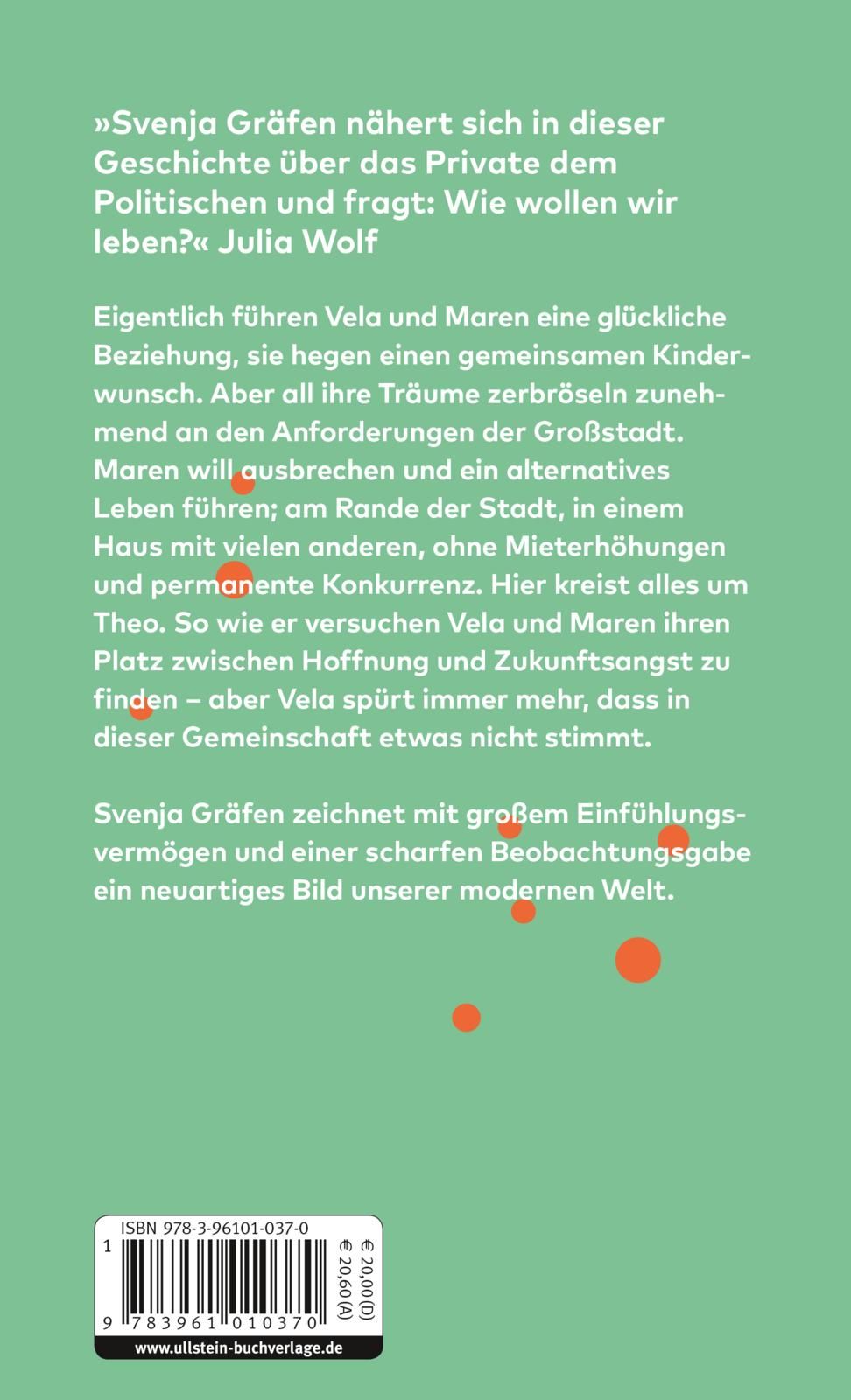 »Mit großer Zärtlichkeit spürt Svenja Gräfen den Gefühlen ihrer Protagonistinnen nach. In dieser Geschichte nähert sie sich über das Private dem Politischen. ›Wie wollen wir leben?‹ lautet die Frage, die diesen Text vorantreibt.« Julia Wolf.