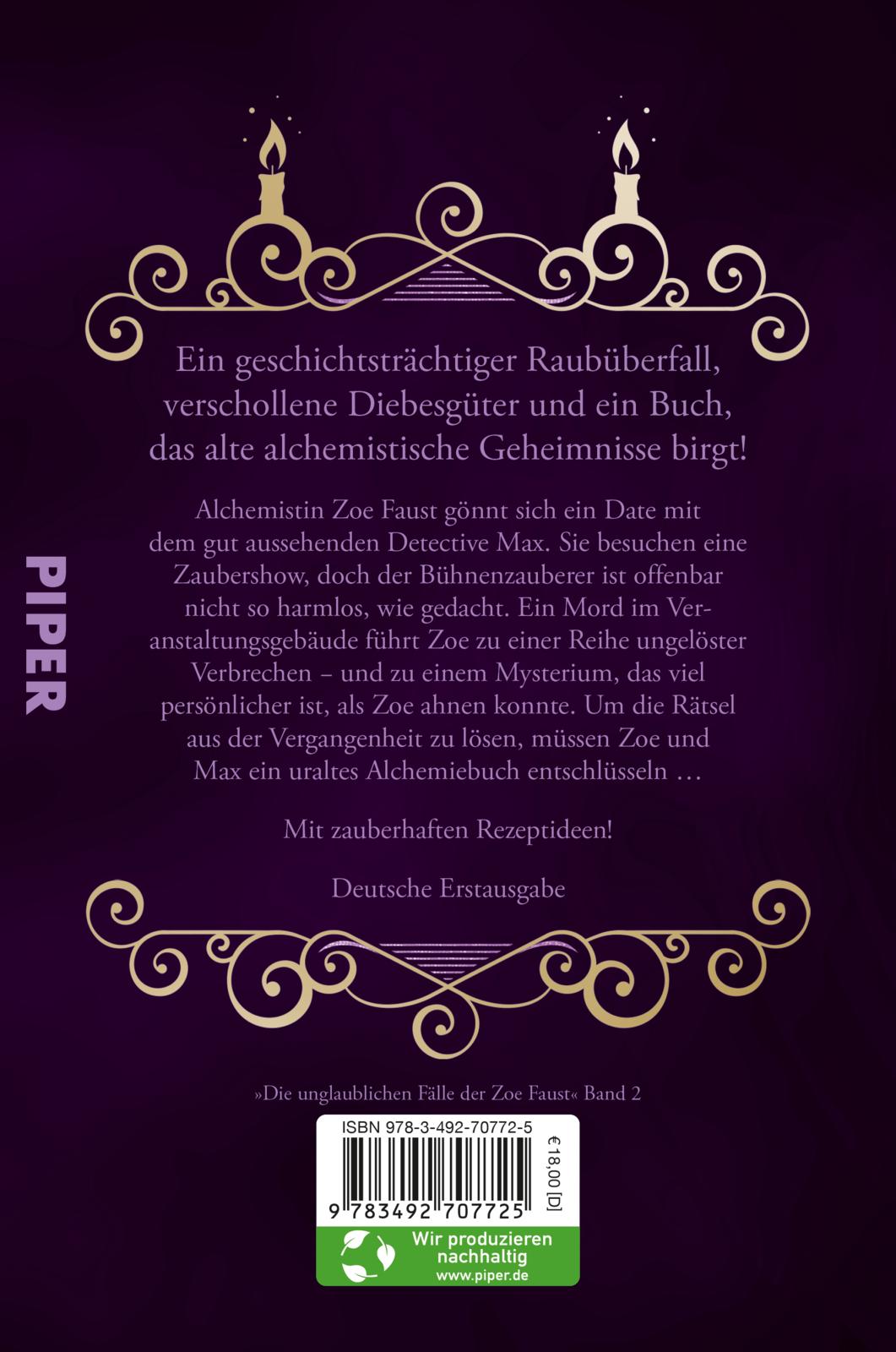 Alchemistin Zoe Faust gönnt sich eine romantische Verabredung mit dem gut aussehenden Detective Max bei einer klassischen Zaubershow. Doch Bühnenzauberer sind offensichtlich nicht immer so harmlos, wie man denkt. Ein Mord im Veranstaltungsgebäude führt Zoe zu einer Reihe ungelöster Verbrechen − und zu einem Mysterium, das viel persönlicher ist, als Zoe ahnen konnte. Können sie und Max die Rätsel aus der Vergangenheit lösen und rechtzeitig ein uraltes Alchemiebuch entschlüsseln, um zu verhindern, dass ihr bester Freund, der Gargoyle Dorian, für immer versteinert bleibt?