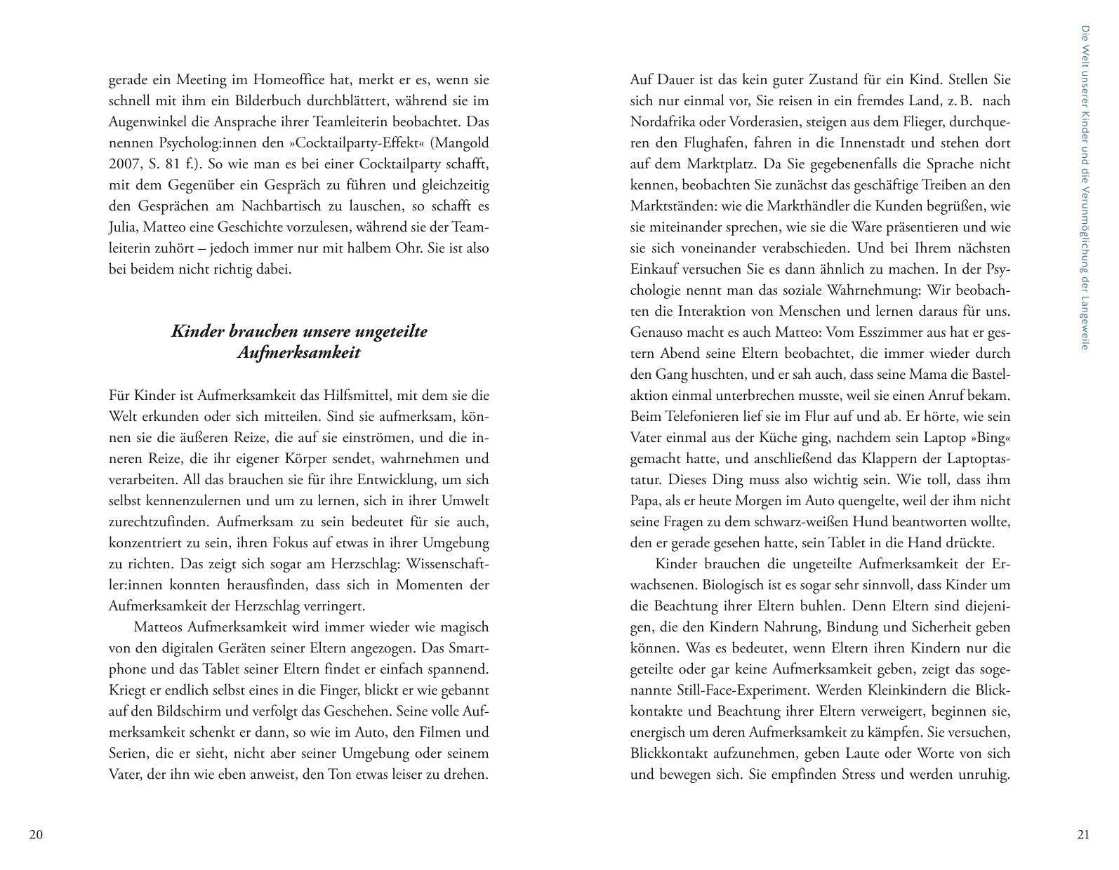 Viele Kinder sind es nicht mehr gewohnt mit Langeweile, Frust und Rückschlägen angemessen umzugehen. Sie hatten in ihrem jungen Leben auch kaum Gelegenheit, den Umgang damit zu üben, da ihre Eltern sie mit Ablenkungen, Annehmlichkeiten und Fürsorge überschütten, ihnen Hindernisse aus dem Weg räumen oder sie bei drohender Langeweile reflexartig bespaßen. Das tun sie im besten Glauben, „bedürfnisgerecht“ zu erziehen und verwechseln dabei echte Bedürfnisse mit Wünschen oder umschiffen schlichtweg den Konflikt mit ihrem Kind. Gleichzeitig bekommen diese Kinder von ihren Eltern häufig eines nicht: ihre ungeteilte Zeit und Aufmerksamkeit, denn um diese Dinge konkurrieren sie mit dem Handydisplay und ziehen dabei häufig den Kürzeren.