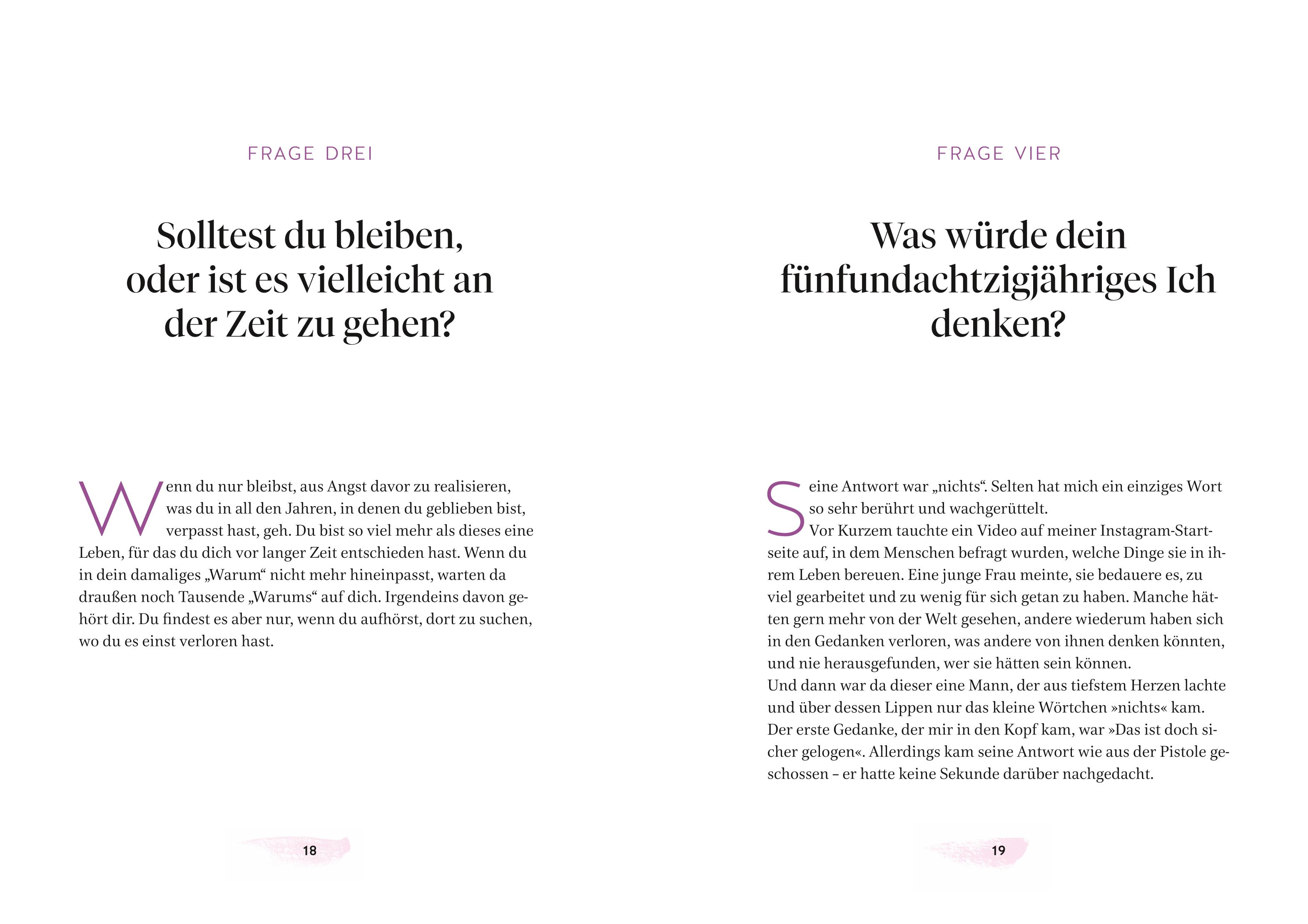 - Beschreibung Traurigkeit, Selbstzweifel, mangelnde Klarheit – was hilft, wenn wir alles zerdenken, keinen Ausweg sehen, nicht mehr weiterwissen: heilsame Fragen! Sie sind ein mächtiges Tool, sich selbst aus Negativschleifen zu befreien und in sich Orientierung zu finden. Auch Elena Anna Mayr halfen die richtigen Fragen, sich selbst aus einer tiefen Lebenskrise zu retten. In ihrem ersten Buch stößt Elena mit ihren sensiblen Frage-Impulsen unsere Herzen auf, ermutigt uns, auf unsere innere Stimme zu hören und unserem Bauchgefühl zu vertrauen. Leichtfüßig, jedoch niemals banal, führen uns ihre klugen eindringlichen Fragen zu uns selbst und legen unser ganzes großartiges Potenzial frei. Mit einem wunderschön gestalteten Layout.
