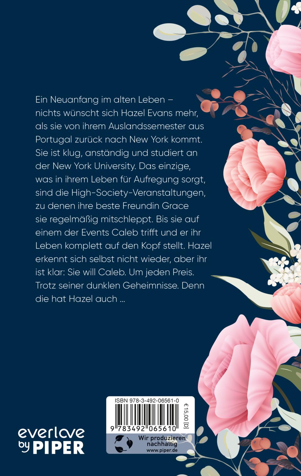 Ein Neuanfang im alten Leben – nichts wünscht sich Hazel Evans mehr, als sie von ihrem Auslandssemester aus Portugal zurück nach New York kommt. Sie ist klug, anständig und studiert an der NYU. Das einzige, was in ihrem Leben für Aufregung sorgt, sind die High-Society-Veranstaltungen, zu denen ihre beste Freundin Grace sie regelmäßig mitschleppt. Bis sie auf einem der Events Caleb trifft und er ihr Leben komplett auf den Kopf stellt. Hazel erkennt sich selbst nicht wieder, aber ihr ist klar: Sie will Caleb. Um jeden Preis. Trotz seiner dunklen Geheimnisse. Denn die hat Hazel auch …